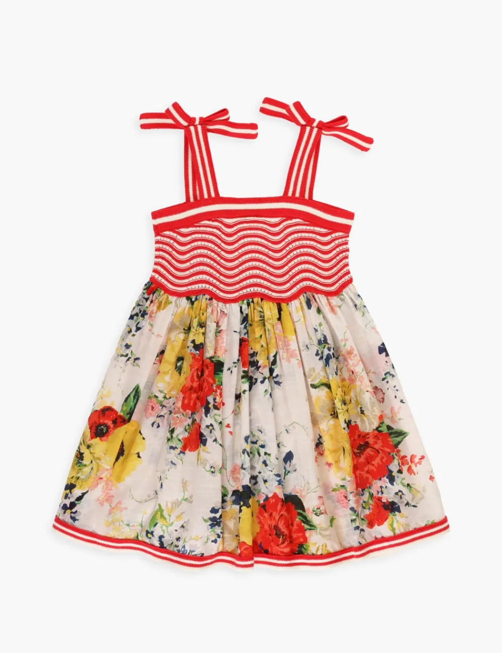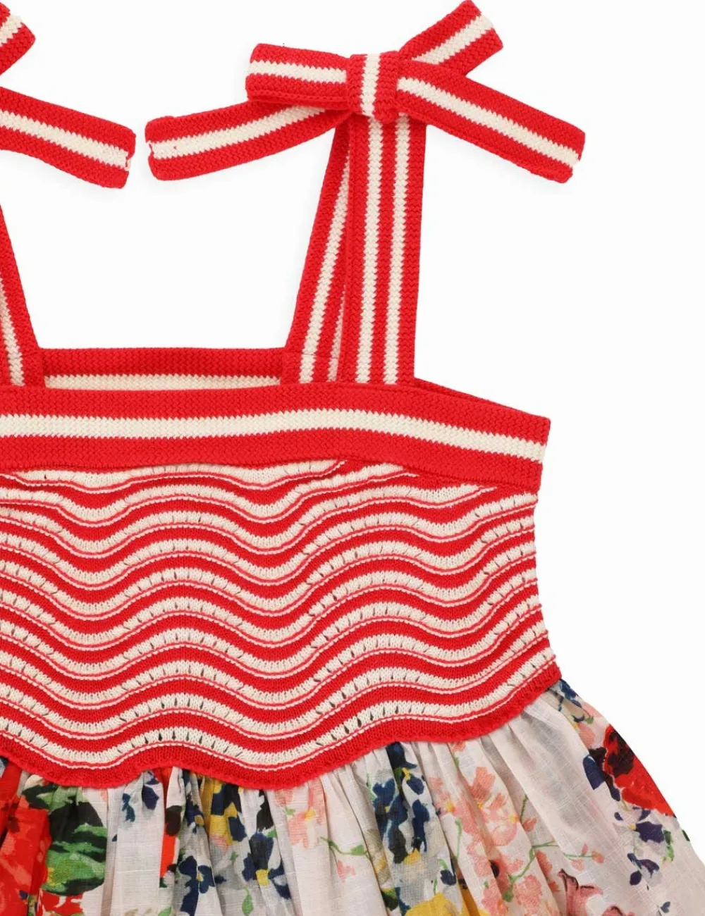 The Alight Knit Top Woven Dress In Multi From Our Resort Swim 2024 Collection. A Woven Bodice With A Floral Cotton Skirt.