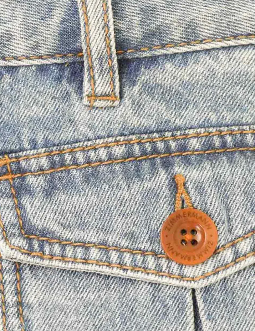 The Raie Mini Short In Faded Blue From Our Summer Swim 2023 Collection. High Rise Denim Shorts Featuring Front Patch Pockets With Flaps.
