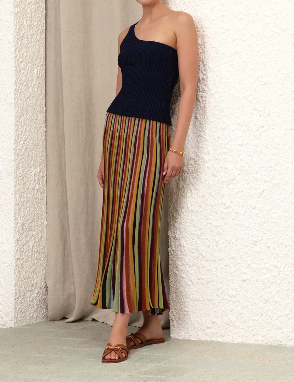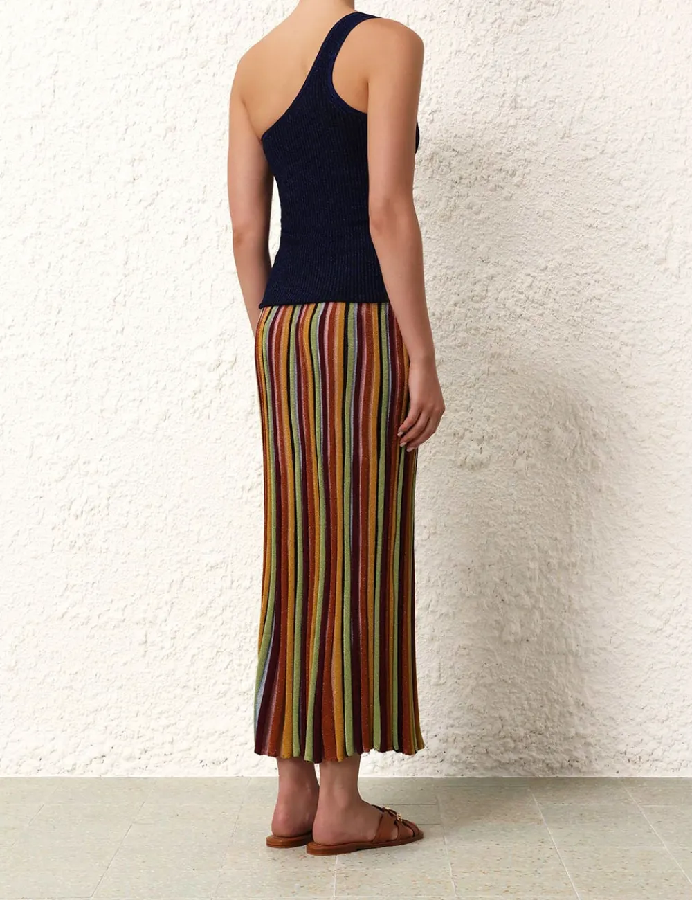 The Alight Lurex One Shoulder Top In Navy Lurex From Our Resort Swim 2024 Collection. A One Shoulder Top Constructed From A Bright Rayon Lurex Knit.