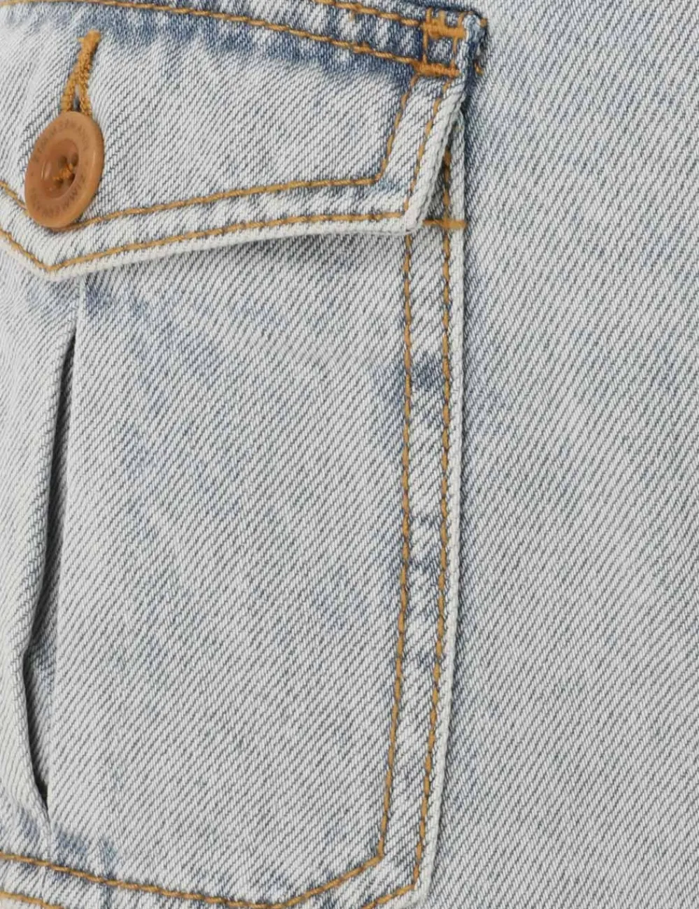 The August Denim Mini Short In Storm Blue From Our Resort Swim 2024 Collection. A Denim Short Featuring Front And Back Pockets.