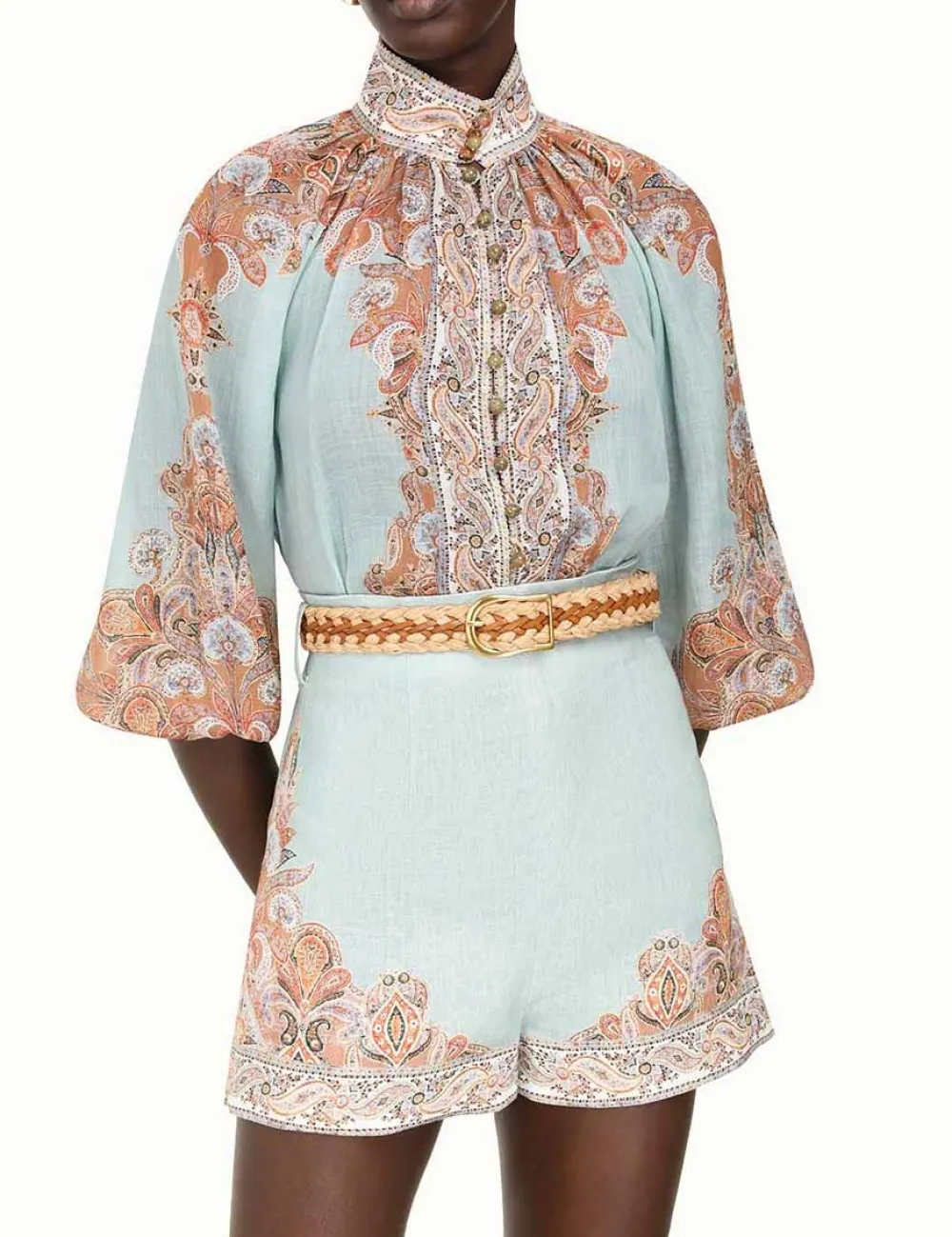 The Braided Jean Belt In Brandy From Our Summer Swim 2023 Collection. A Raffia Belt Featuring A Contrast Leather Braid Throughout.
