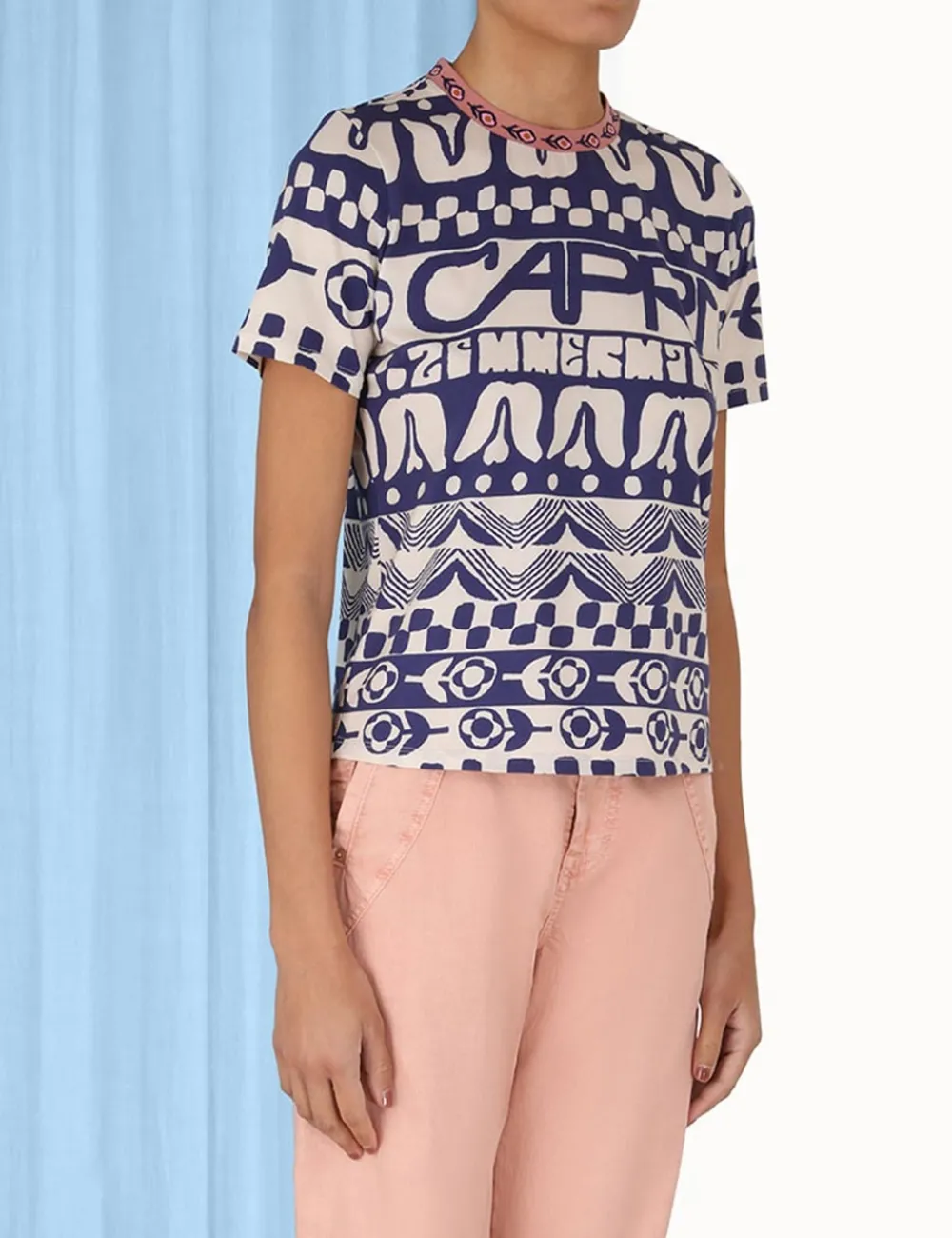 The Capri Straight Fit Tee In Capri From Our Holiday 2023 Edit. A Classic Tee With A Round Neckline And Short Sleeves.