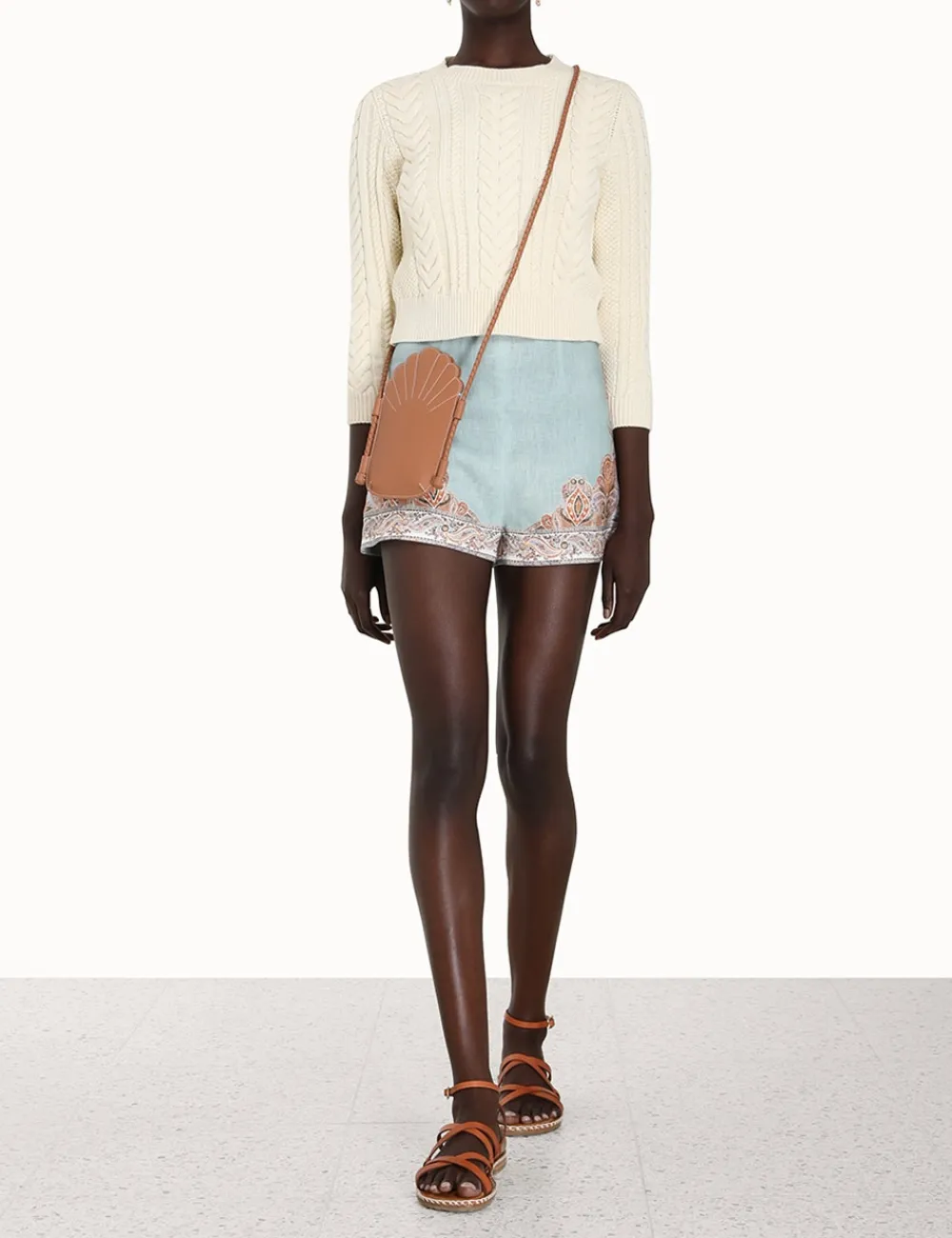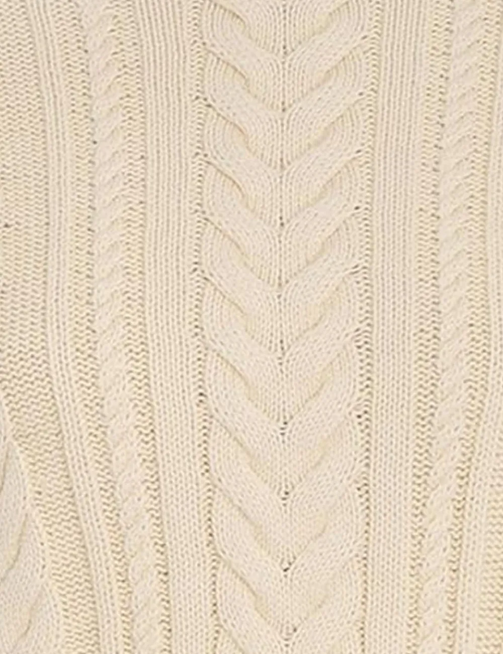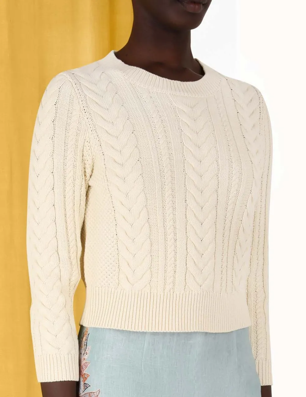 The Devi Cable Knit Top In Cream From Our Summer Swim 2023 Collection. A Short Sleeve Top Featuring A Cable Knit Throughout.