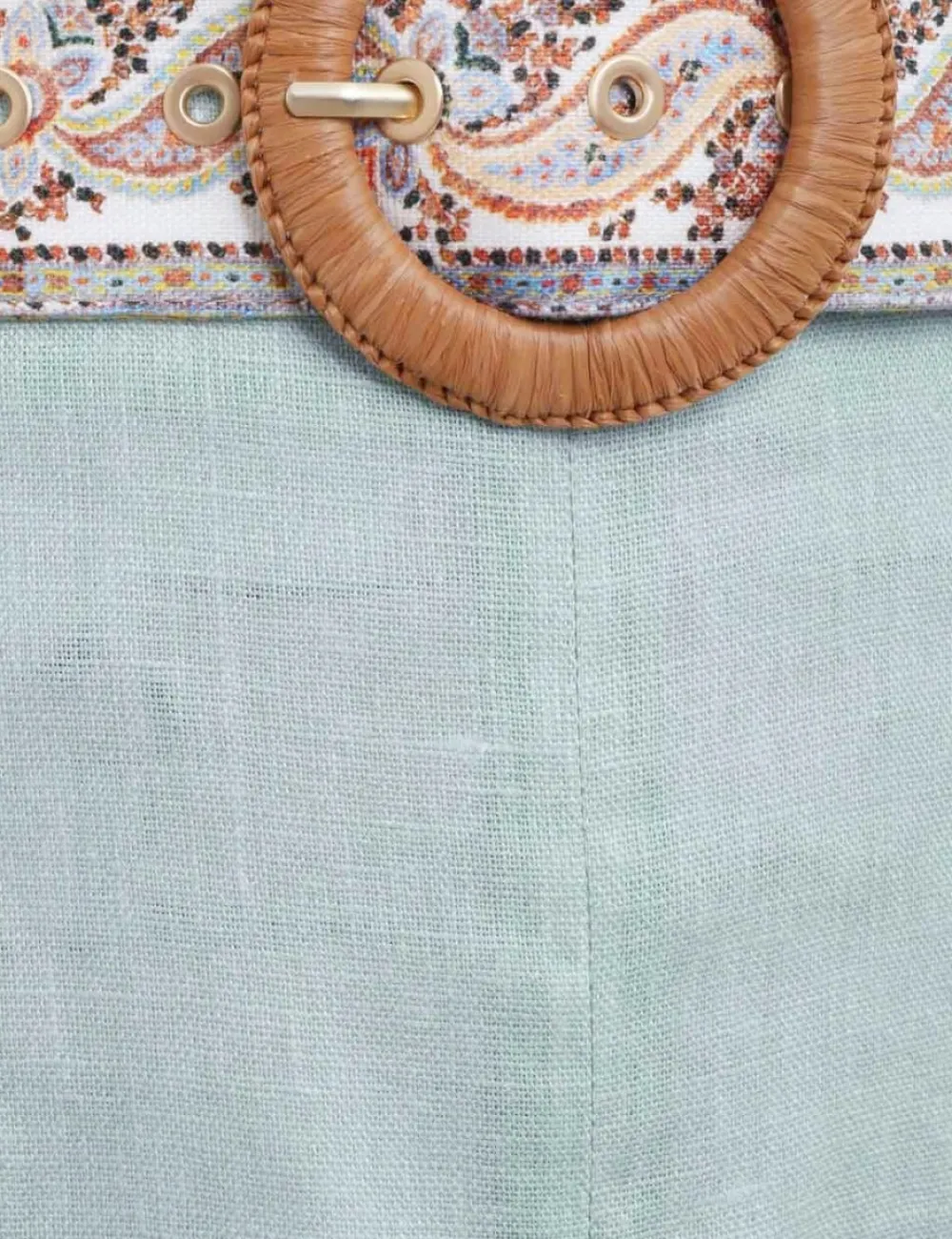 The Devi Fitted Short In Mint Paisley From Our Summer Swim 2023 Collection. A Linen Short Featuring A Placement Print Throughout And A Self Cover Printed Belt.
