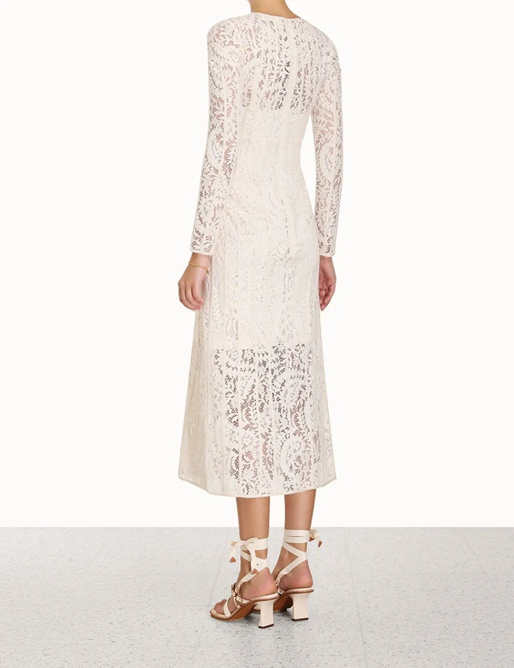 ZIMMERMANN Devi Panelled Lace Midi Dress-Women Clothing