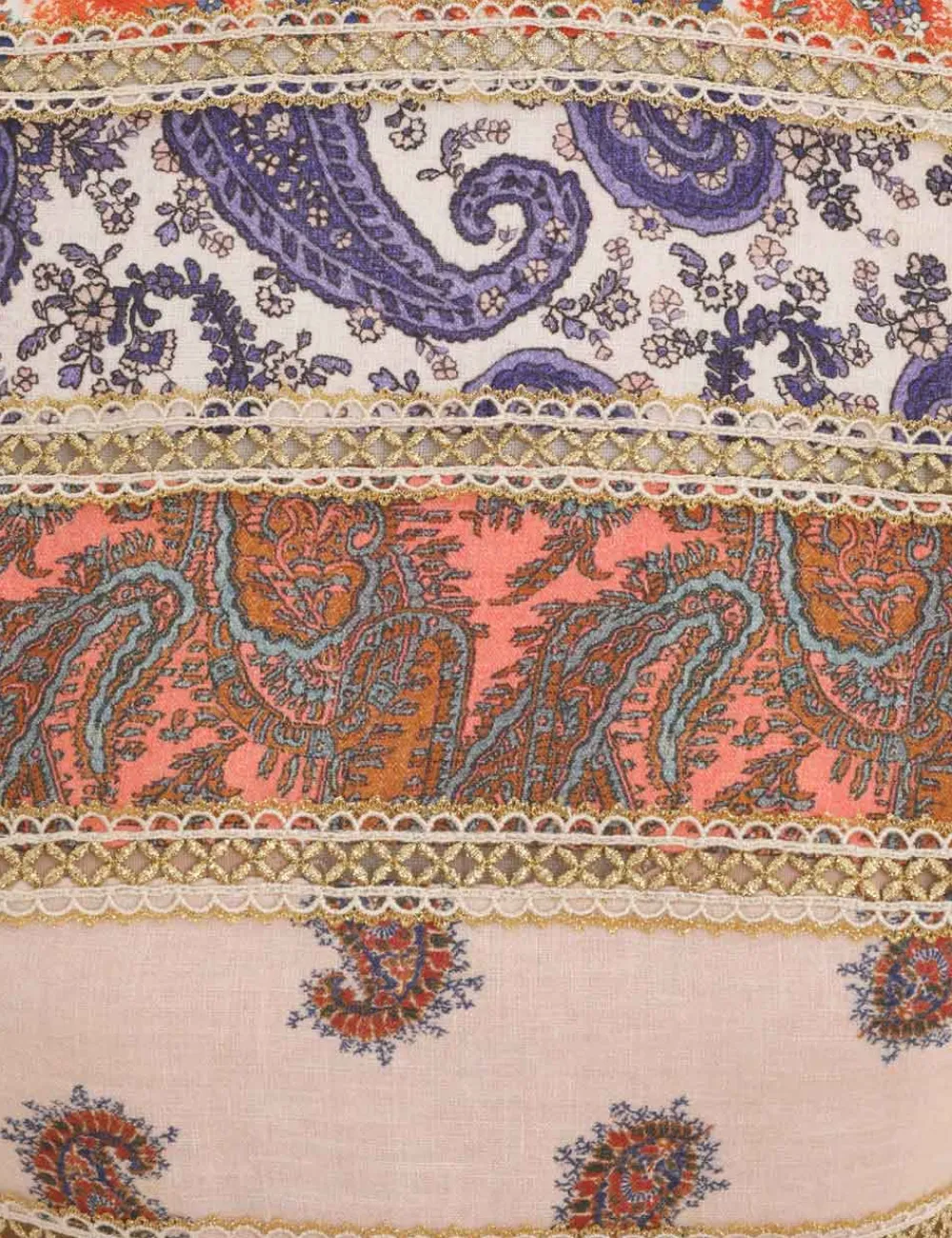 The Devi Spliced Mini Dress In Spliced From Our Summer Swim 2023 Collection. A Linen Mini Dress Featuring A Fitted Bodice And Full Skirt, Finished With Lace Trims Throughout.