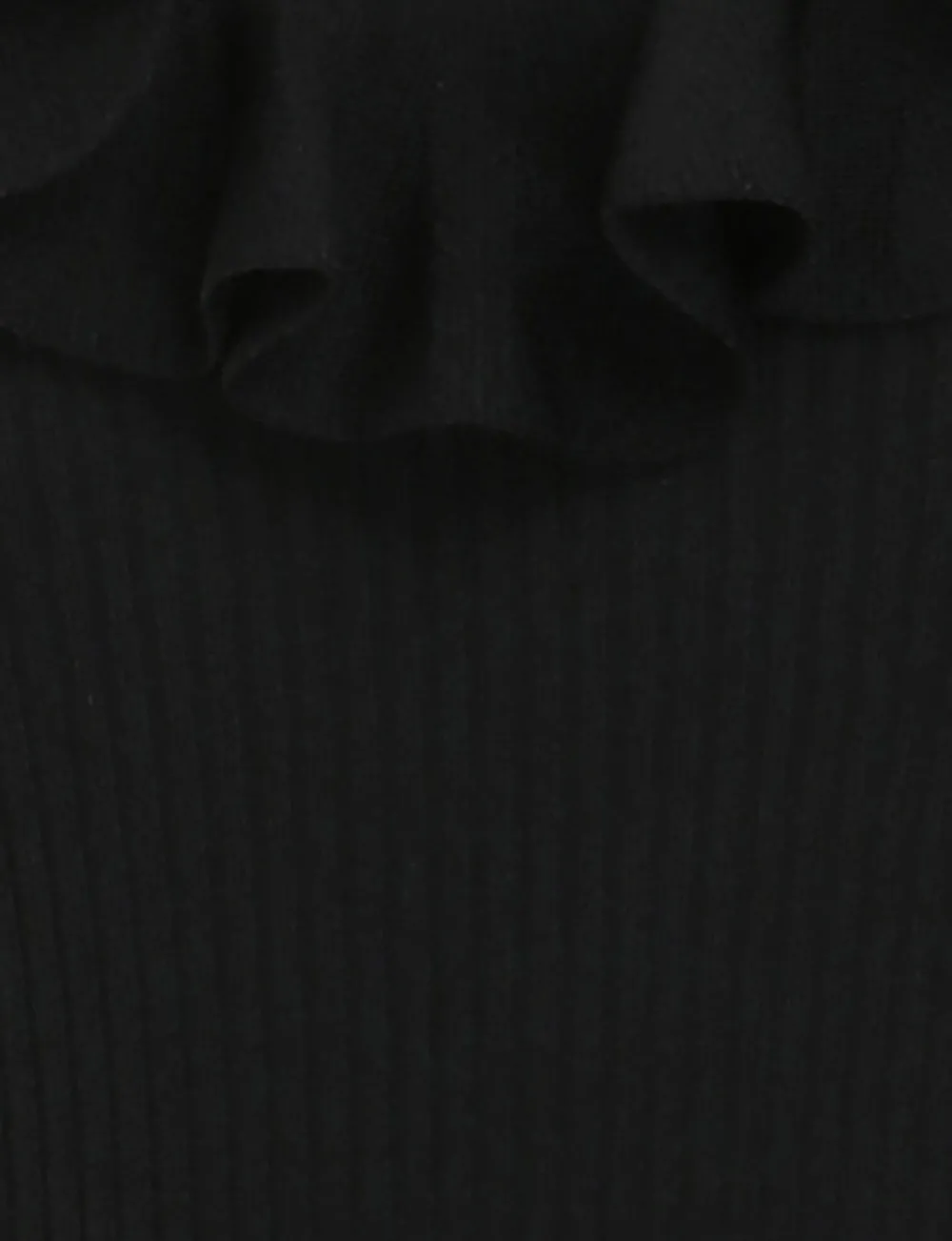 The Devi V-Neck Frill Tank In Black From Our Summer Swim 2023 Collection. A Ribbed Knit, Fitted Tank With A Frilled Scoop Neckline.