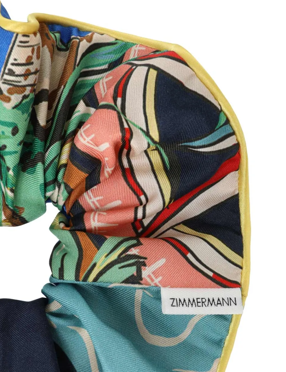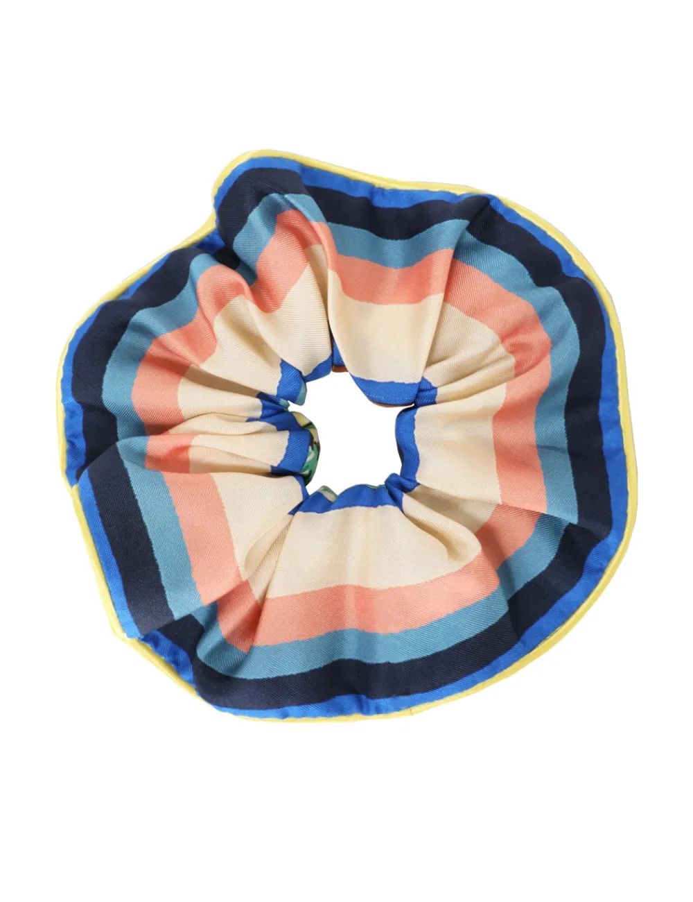 The Double Faced Silk Scrunchie In Nautical Map From Our Resort 2024 Collection, Matchmaker. A Silk Scrunchie Featuring Contrast Piped Edges.