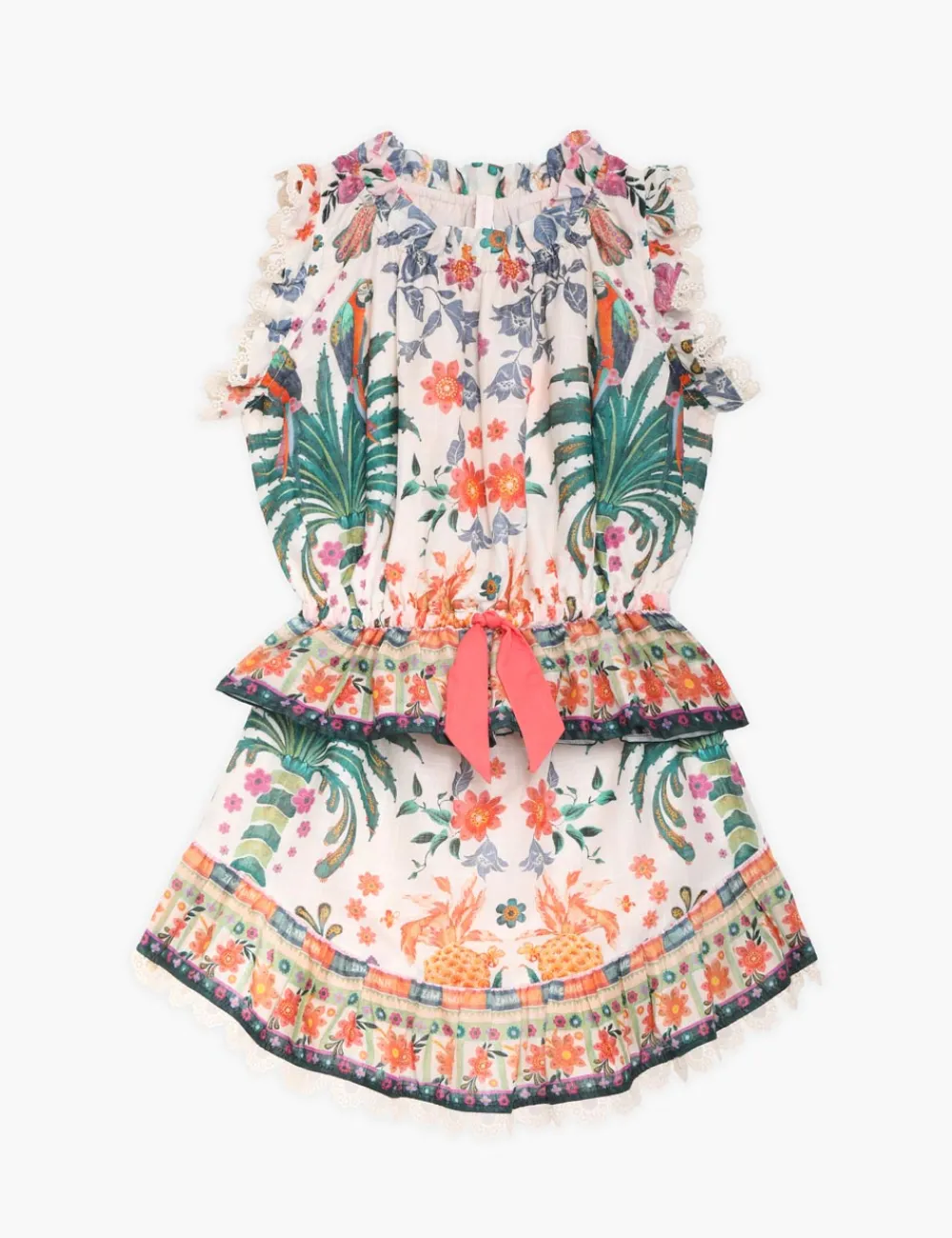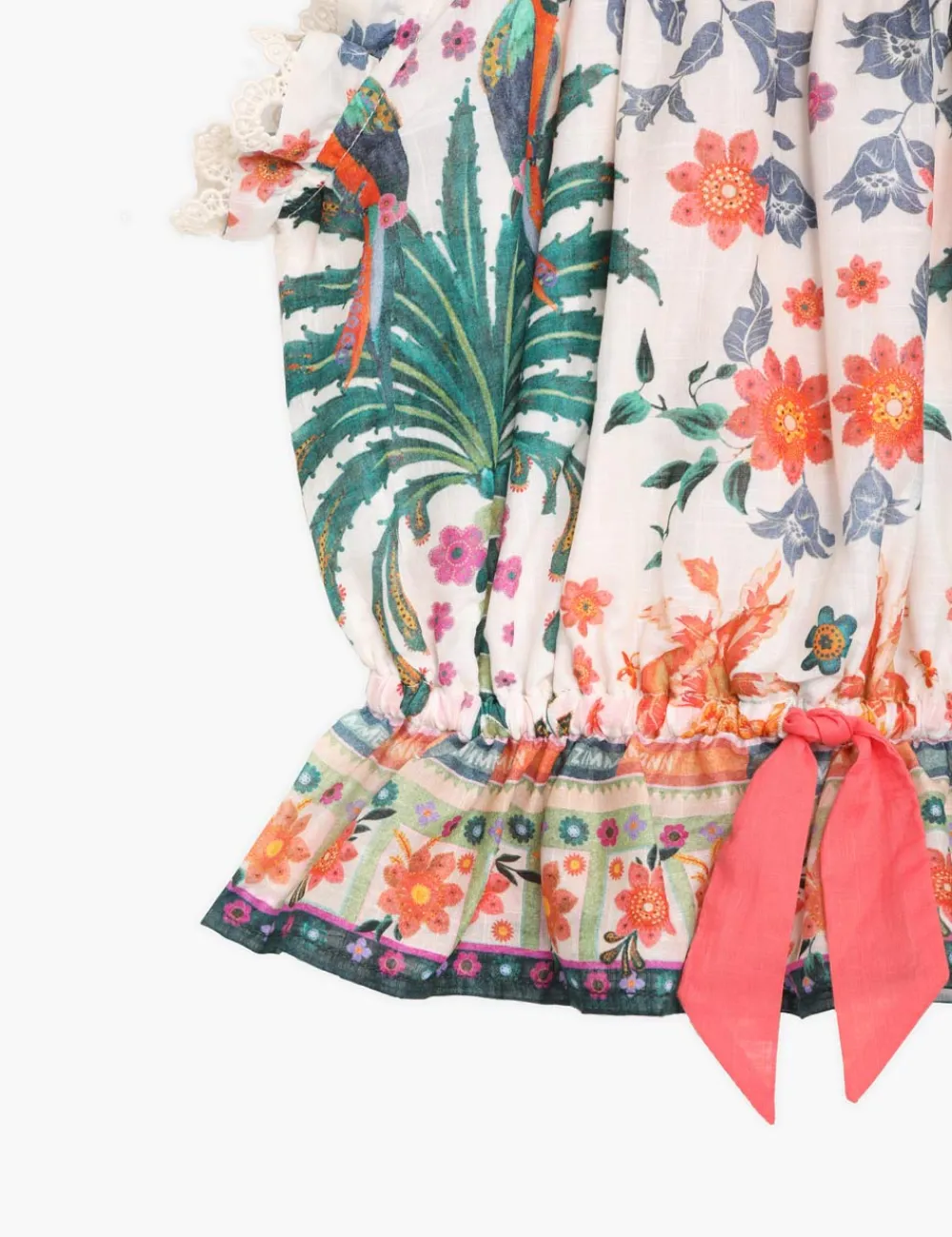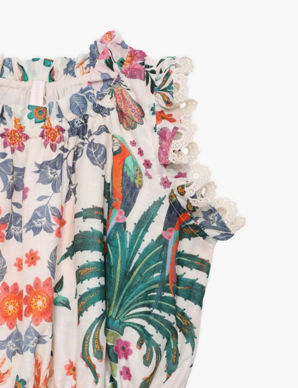 The Ginger Frill Bodice In Cream Tropical From Our Summer Swim 2023 Collection. A Cotton Top Featuring Frilled Edges And An Elastic Waist.