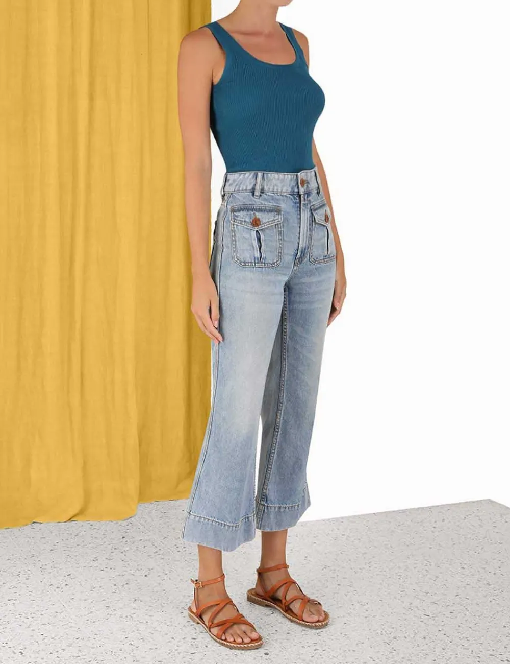 The Ginger Scoop Neck Tank In Teal From Our Summer Swim 2023 Collection. A Ribbed Knit, Fitted Tank With A Scoop Neckline At The Front And Back.
