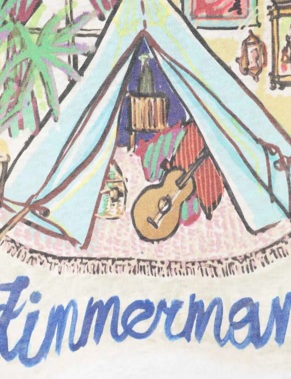 The Ginger Sleeveless Tee In Ivory From Our Summer Swim 2023 Collection. A Round Neck, Short Sleeve Tee With A Ribbed Neckline And Zimmemrann Artwork At Centre Front.