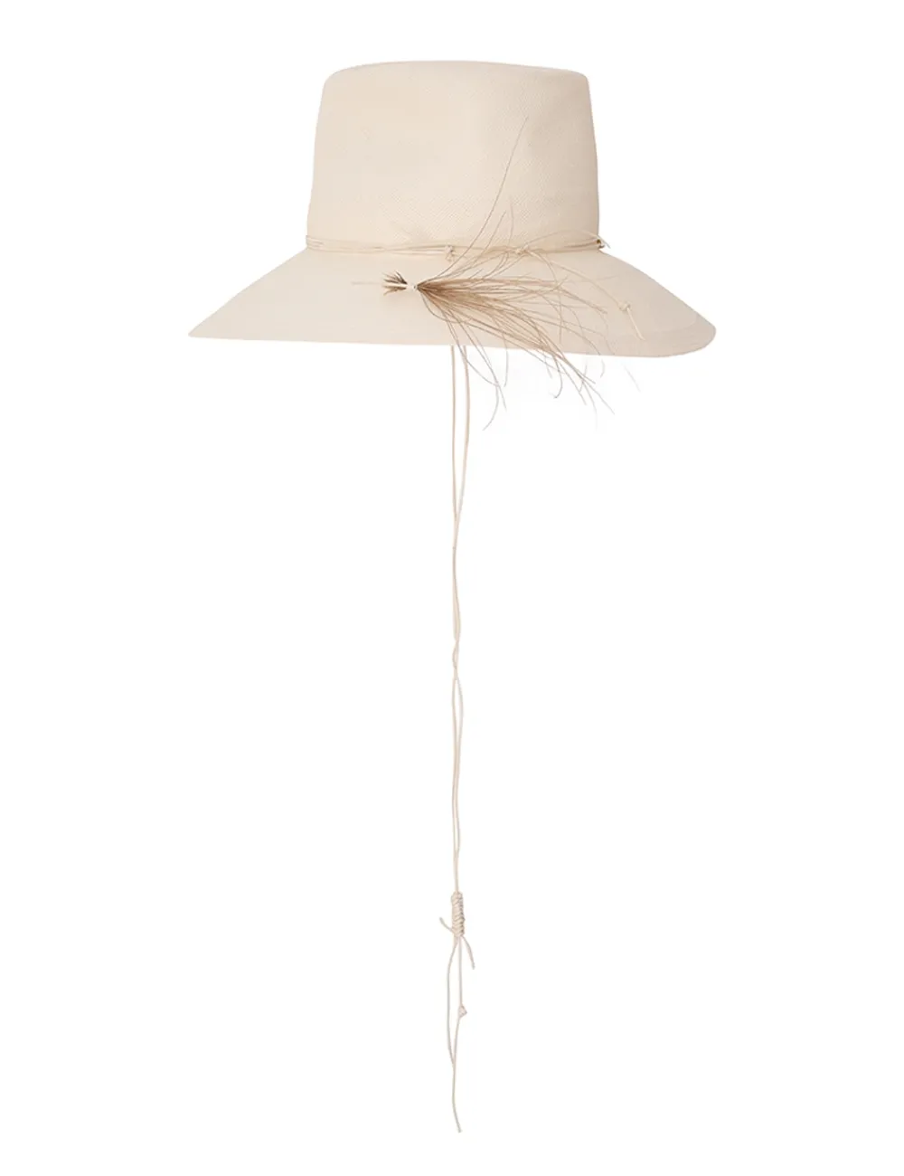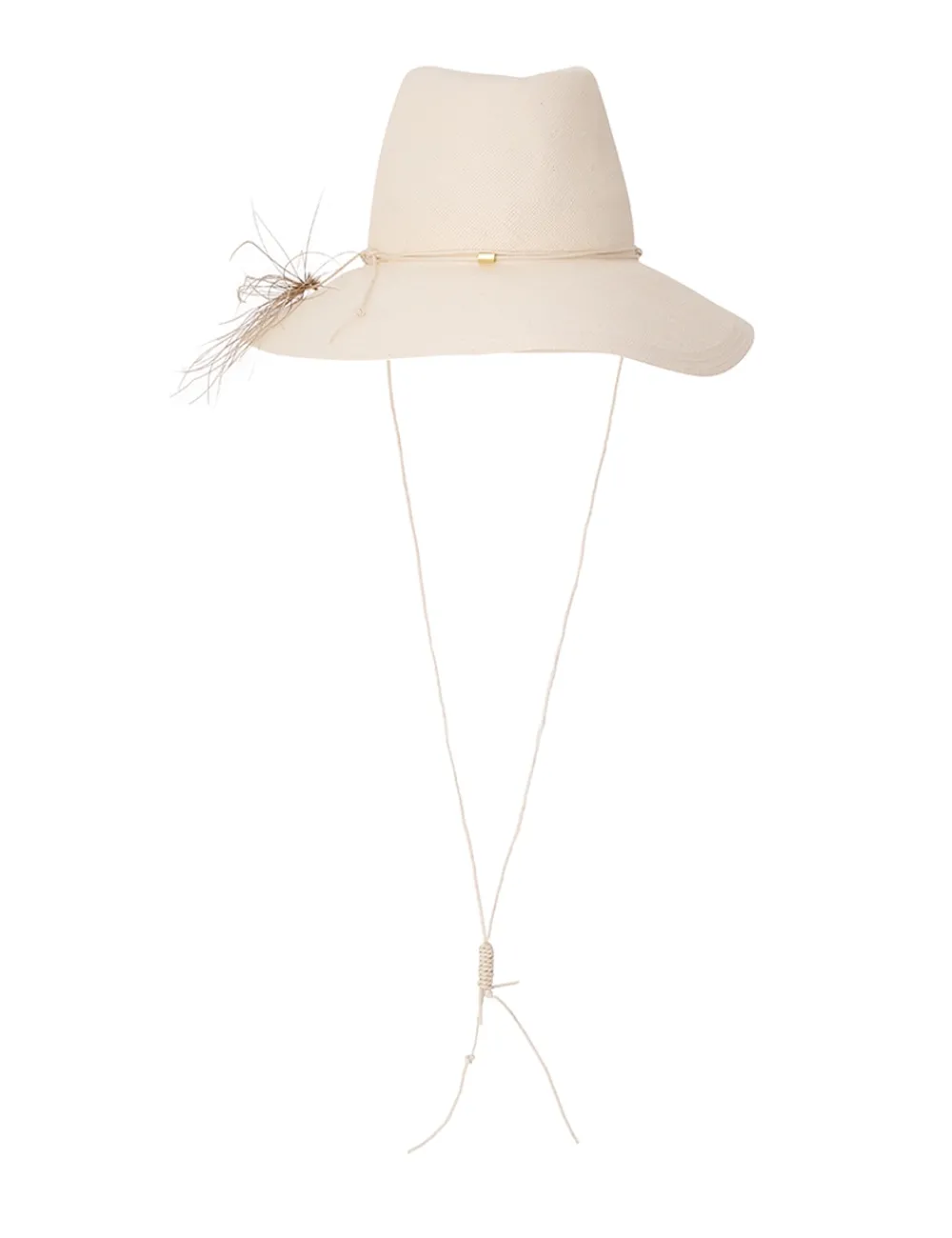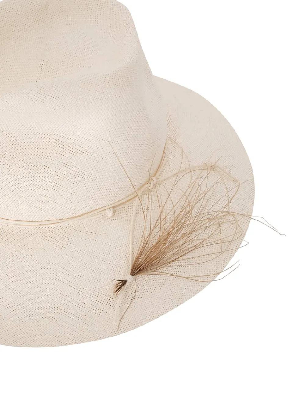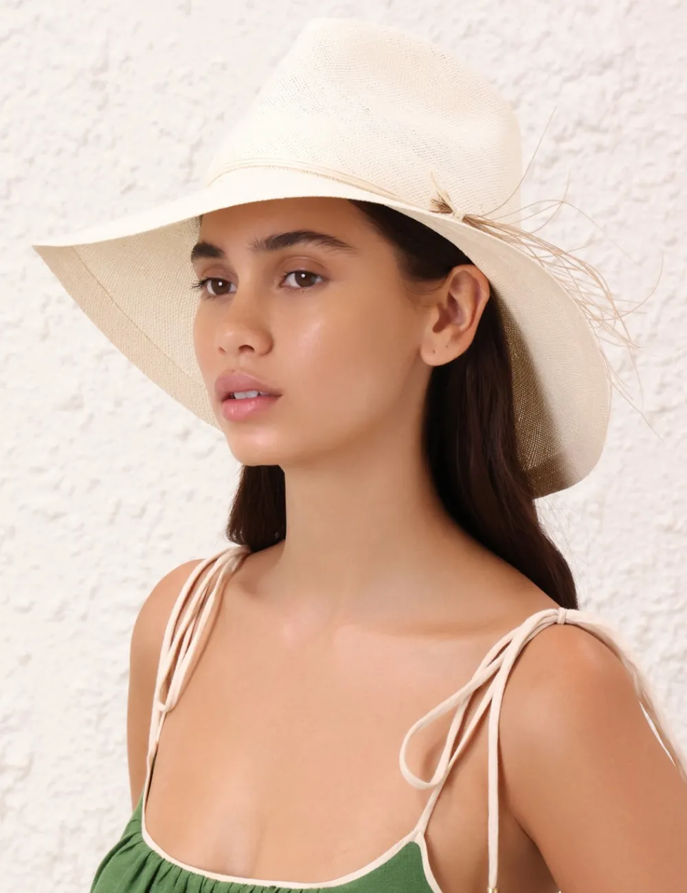 The Glazed Straw Collapsible Hat In Natural From Our Resort 2024 Collection, Matchmaker. A Straw Hat Featuring A Feather Trim.