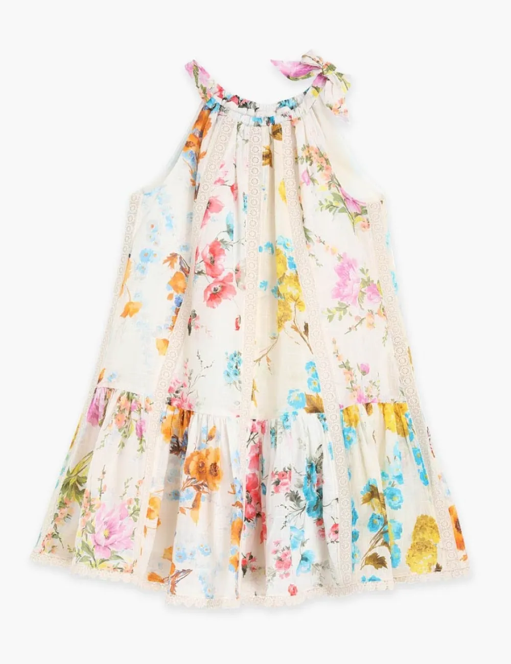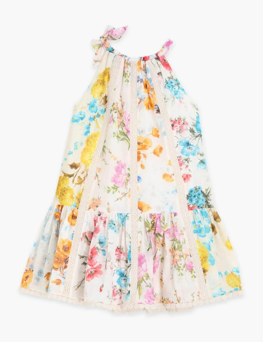 The Halcyon Halter Dress In Spliced From Our Summer Swim 2023 Collection. A Cotton Dress With A Self Tie Halter Neck And Scalloped Hem.