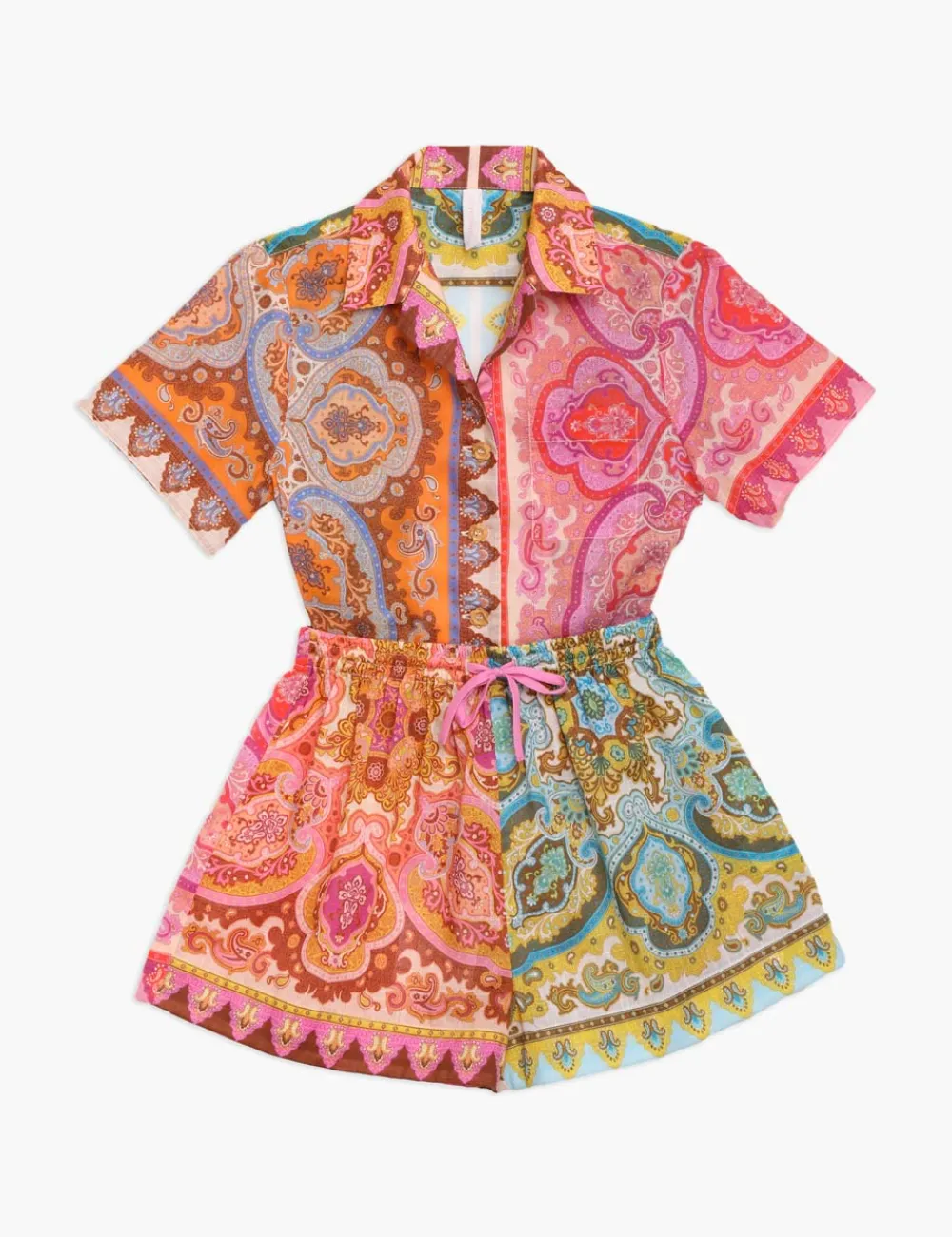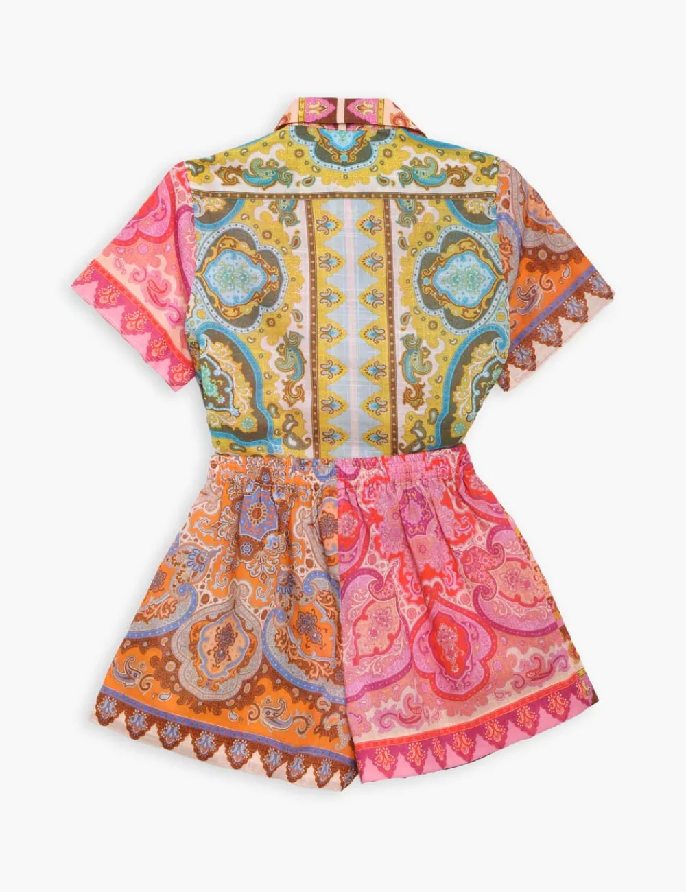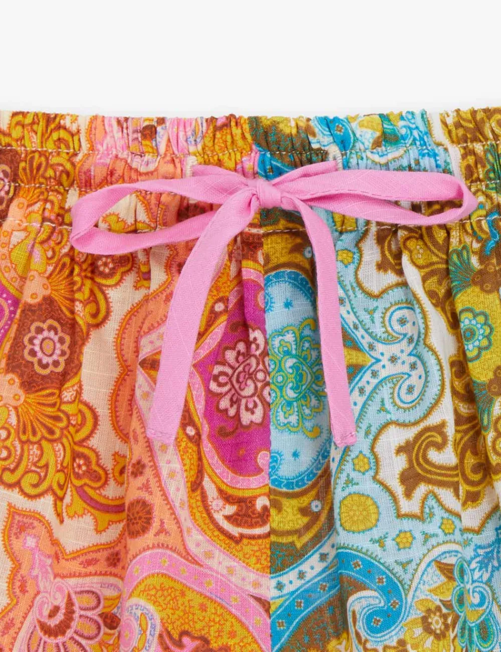 The Halcyon Paisley Shorts In Spliced From Our Summer Swim 2023 Collection. A Cotton Short Featuring An Elastic Waistband And Contrast Spliced Prints Throughout.