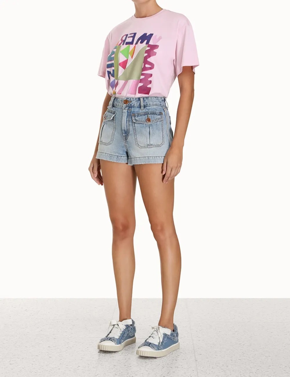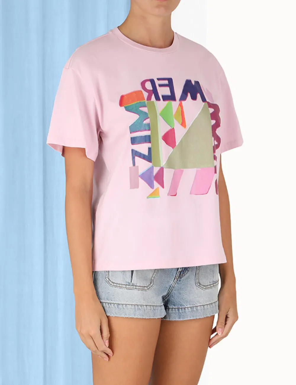 The Halcyon Relaxed Tee In Blushfrom Our Summer Swim 2023 Collection. A Cotton Tee Featuring A Zimmermann Print.
