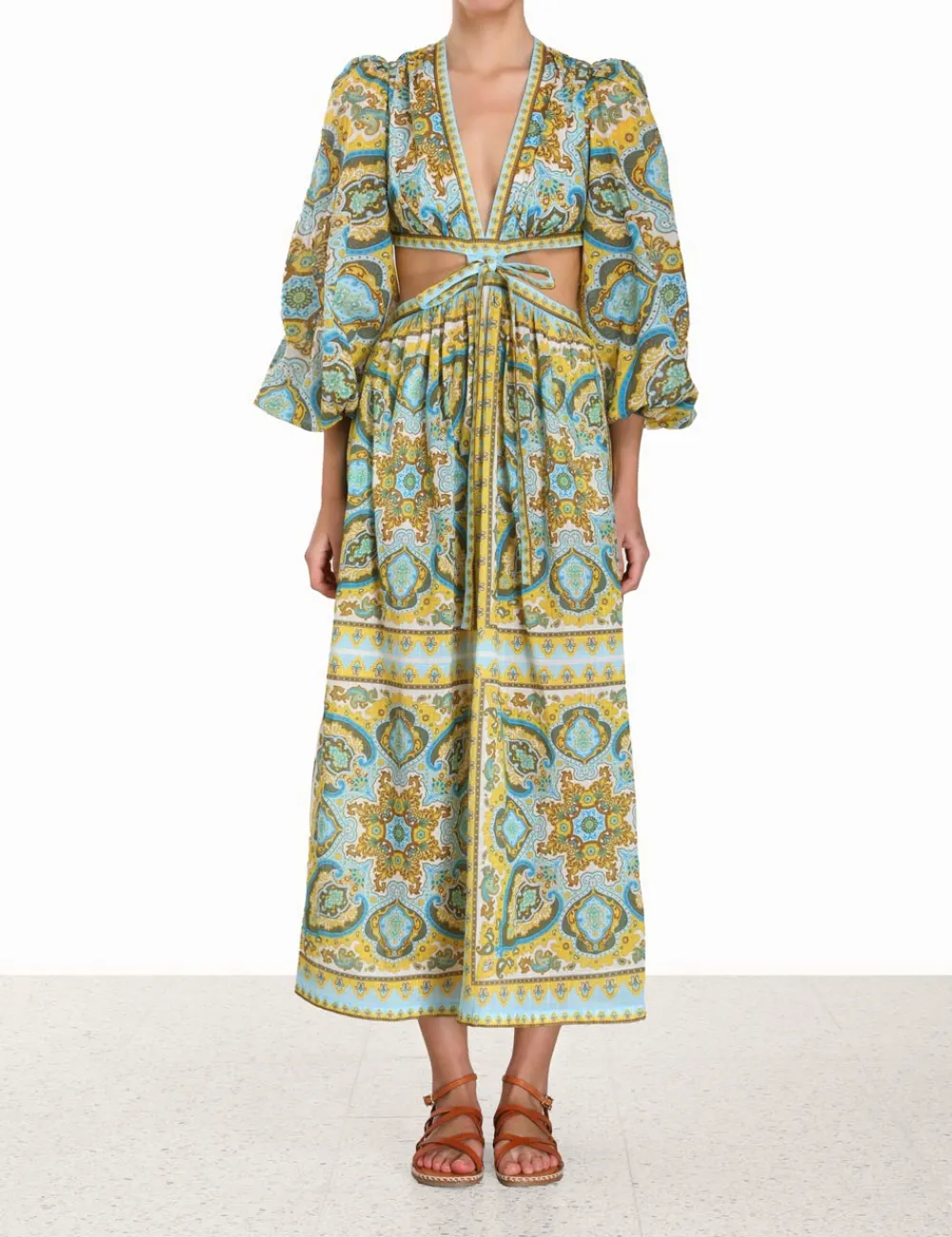 ZIMMERMANN Halcyon Tie Front Midi Dress-Women Dresses & Coverups