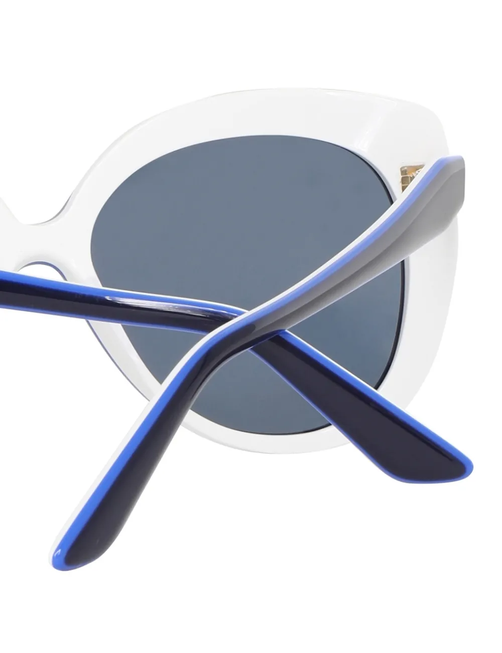 The Zimmermann Inconcert Round In Navy From Our Resort 2023 Collection, High Tide. An Round Acetate Frame With Bevelled Edges And Tinted, Tonal Lenses Featuring Signature Temples And Tips.