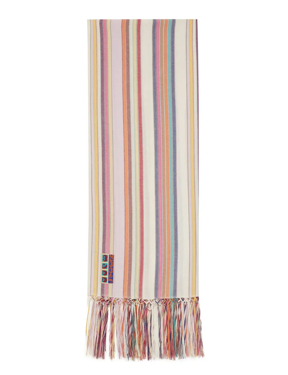 The Jacquard Pareo In Multi Stripe From Our Resort 2024 Collection, Matchmaker. A Large Jacquard Pareo Featuring Contrast Stripes And Tasselled Edges.