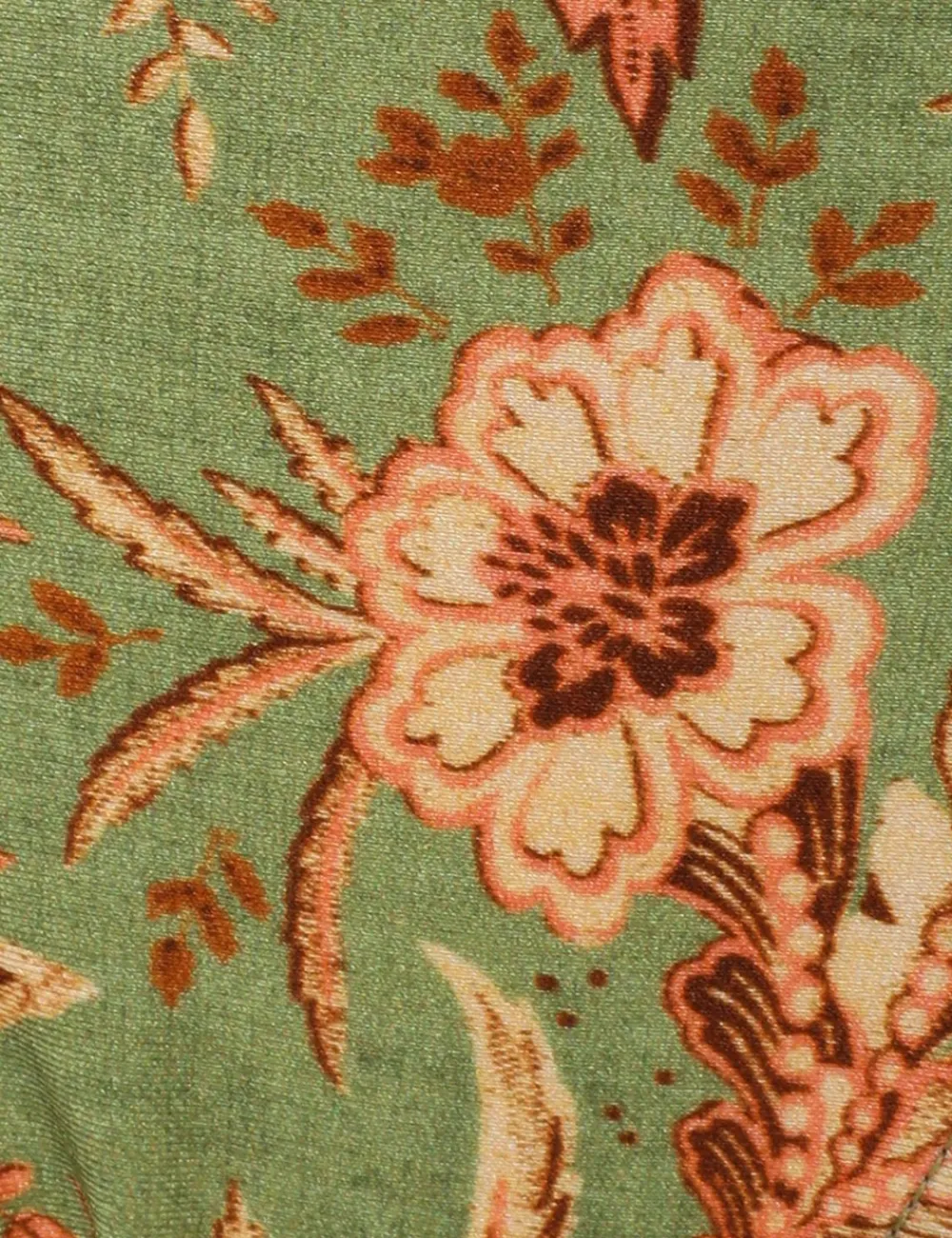 The Junie Chevron Crochet Bikini In Sage/Brown Floral From Our Resort Swim 2024 Collection. An Italian Lycra Bikini Set Featuring A Triangle Top With Chevron Crochet Throughout And Low Cut Pants With Side Ties.