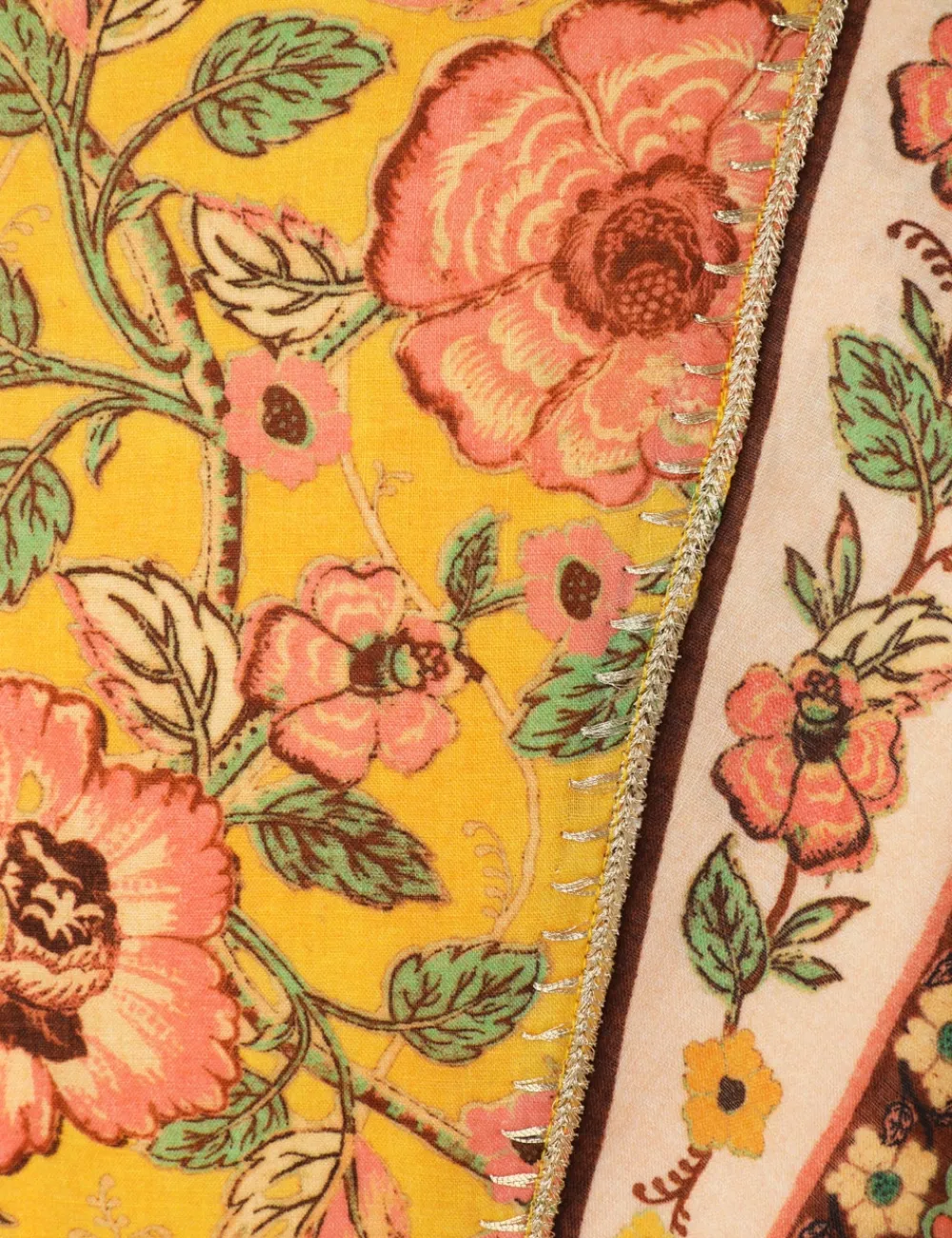 The Junie Spliced Mini Dress In Yellow/Pink Floralfrom Our Resort Swim 2024 Collection. A Spliced Ramie Mini Dress Featuring A Contrast Placement Print Hem Band And Shoulders.