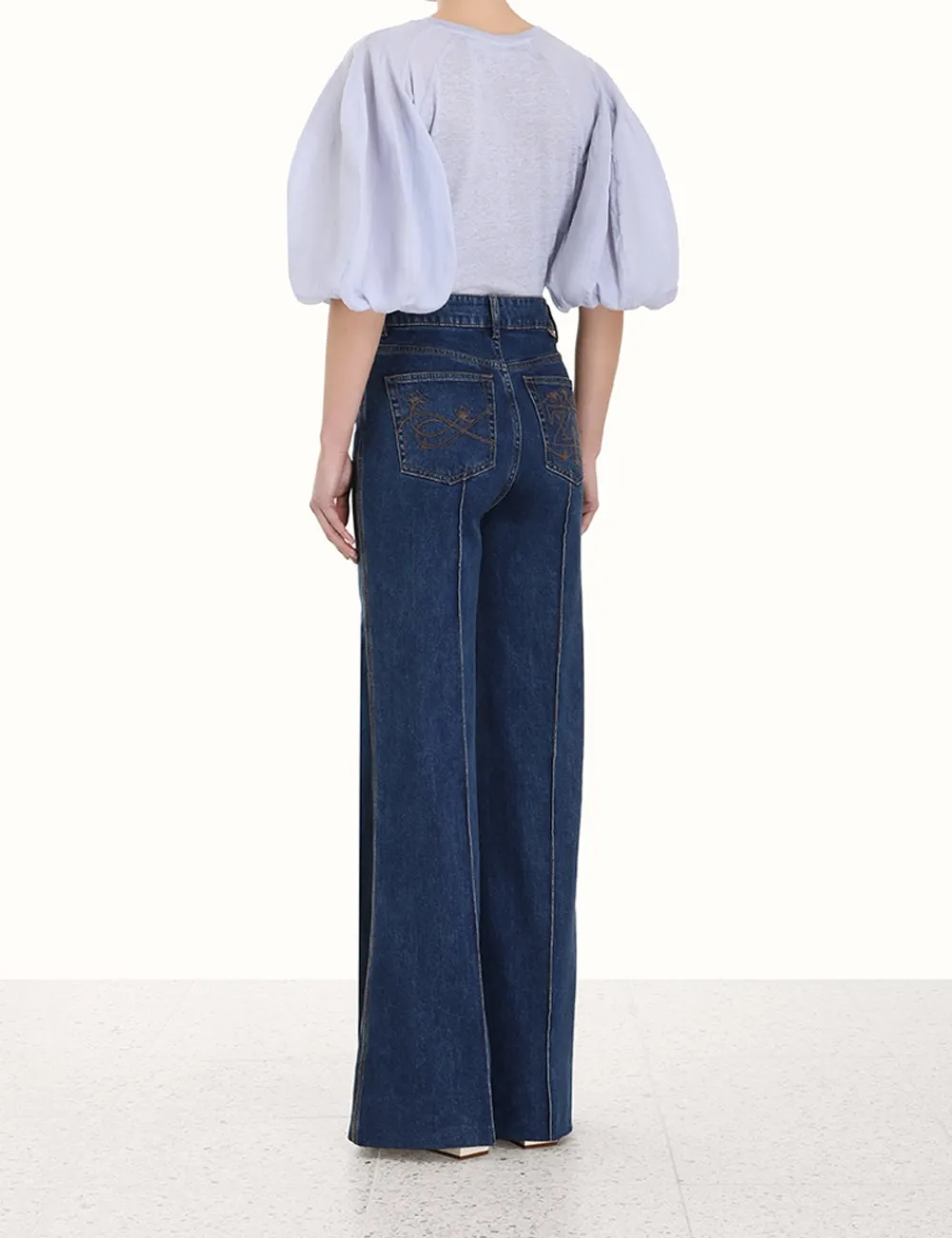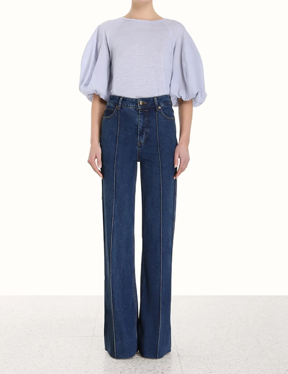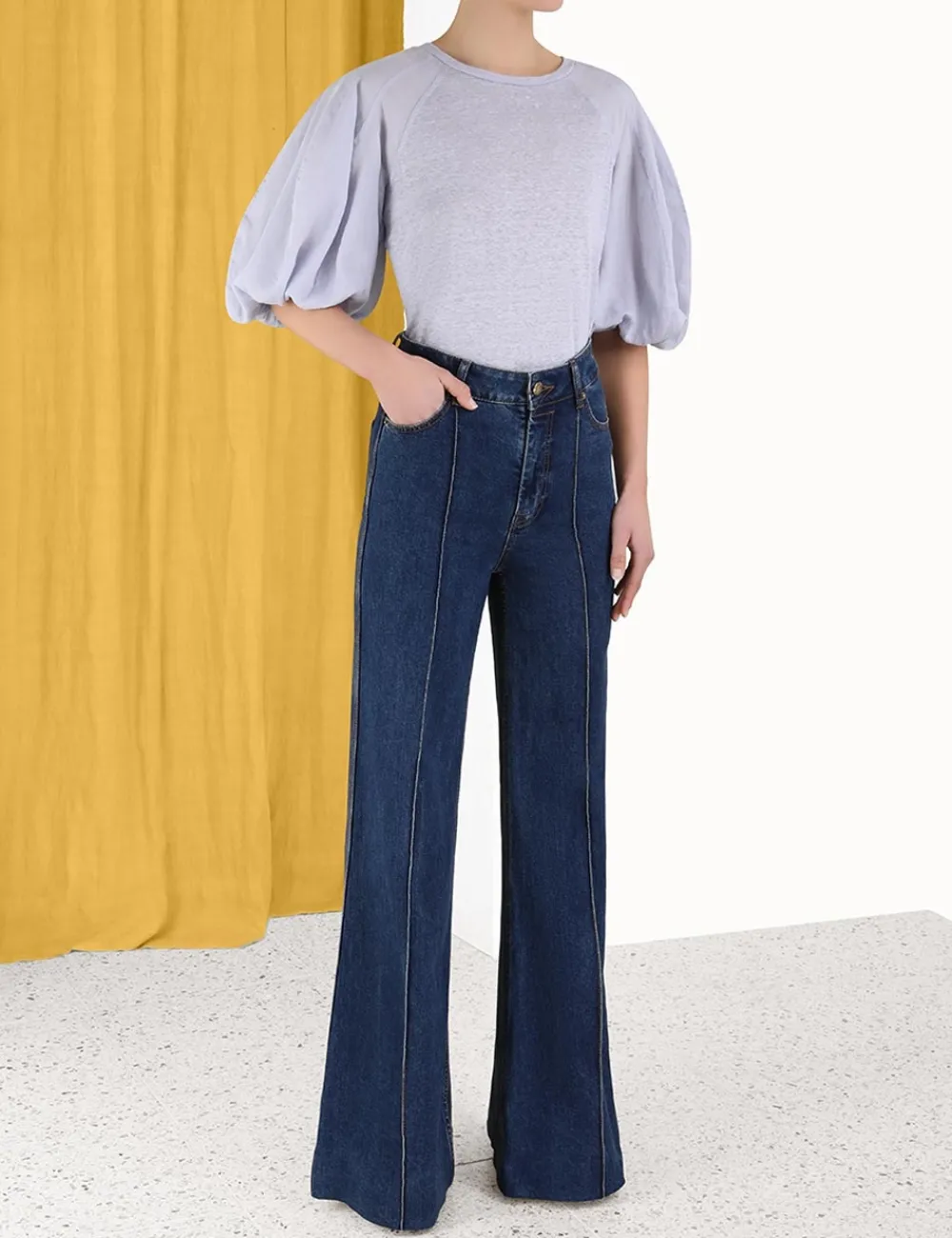 The Lantern Sleeve Tee In Periwinkle From Our Fall 2023 Collection, Luminosity. A Linen Tee Featuring Short Blouson Sleeves.