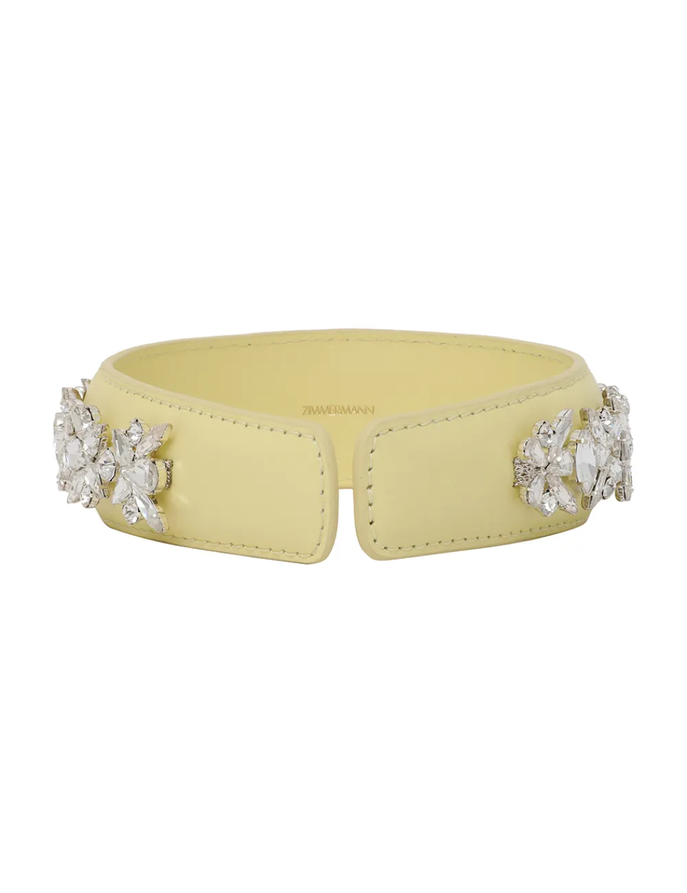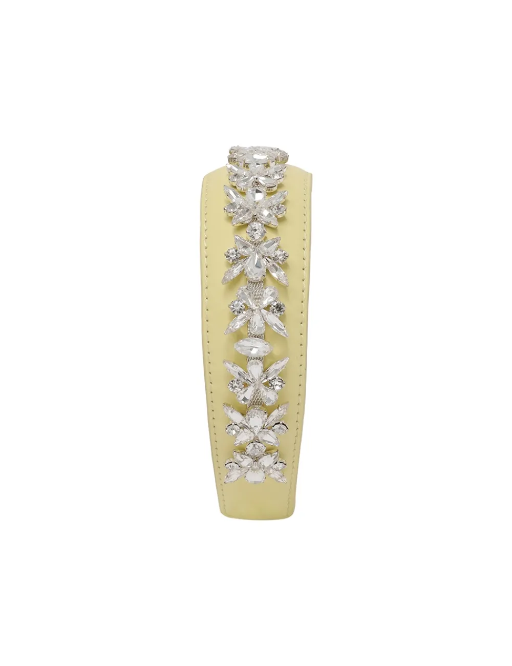 The Leather Crystal Headband In Lemonade From Our Resort 2024 Collection, Matchmaker. A Headband Featuring A Trim Of Diamantes Throughout.
