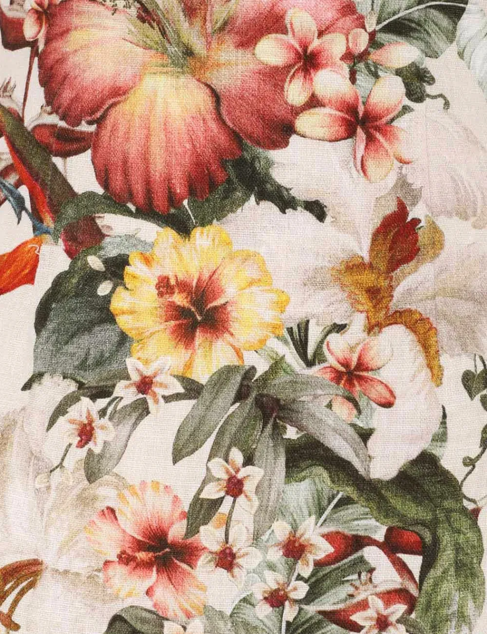 The Lexi Column Dress In Ivory Palm From Our Resort Swim 2024 Collection. A Strapless Linen Midi Dress Featuring A Floral Placement Print On The Front Bodice And Skirt.