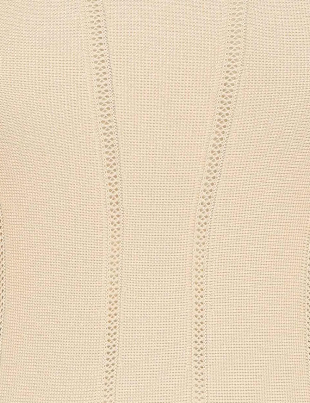 The Luminosity Knit Panelled Top In Cream From Our Fall 2023 Collection, Luminosity. A Knit Top Featuring A Pointelle Stitch Detail Throughout.