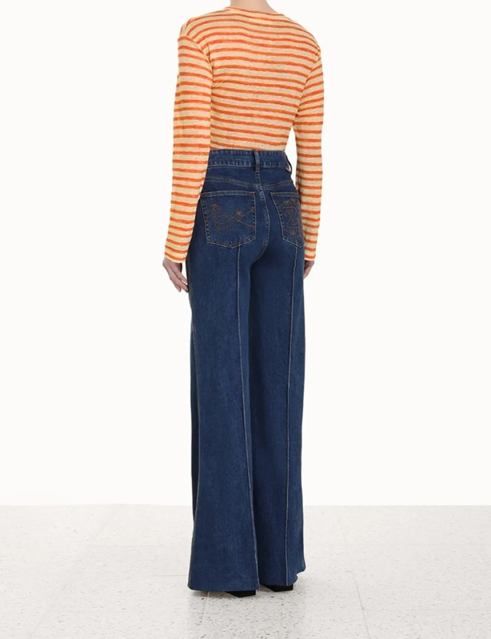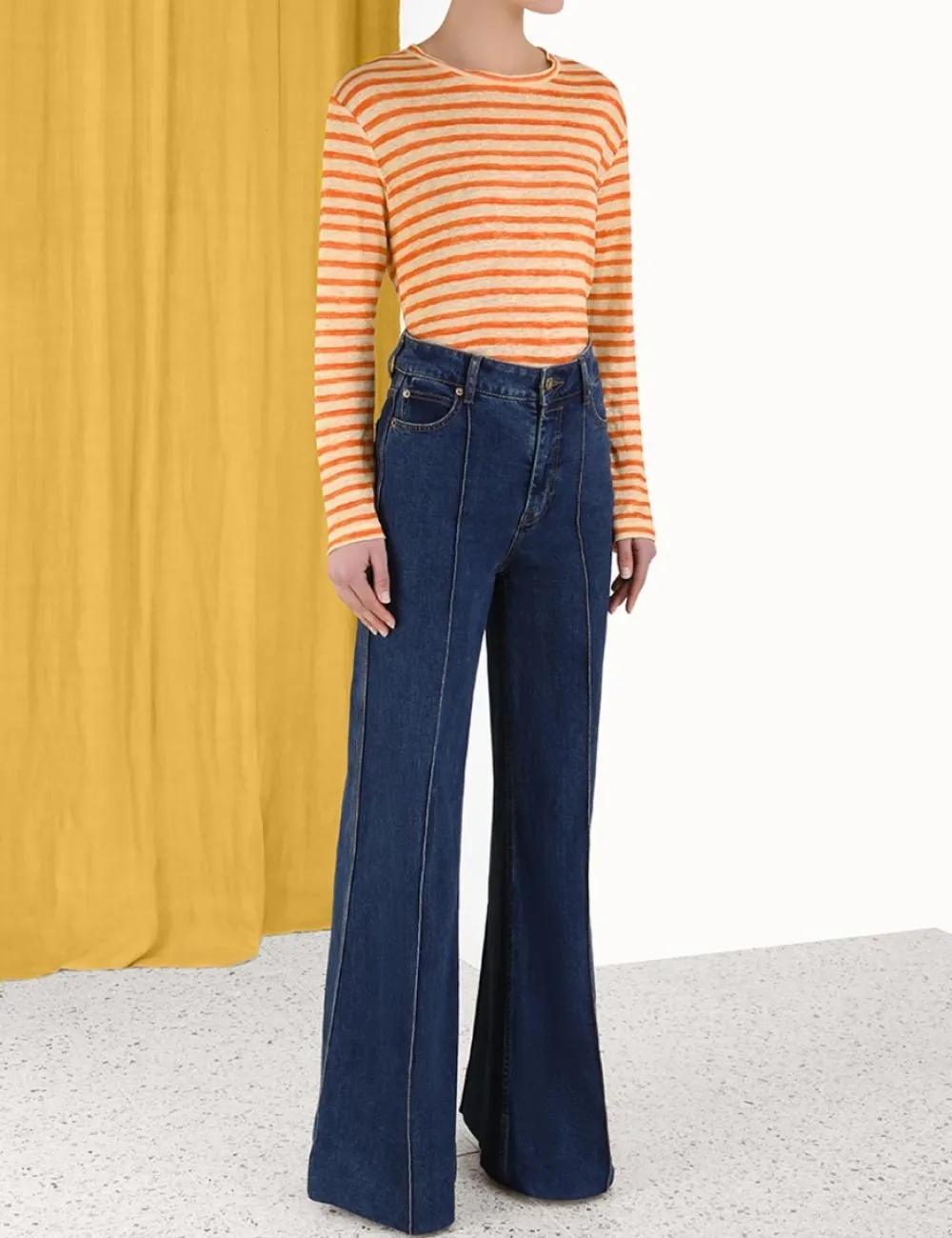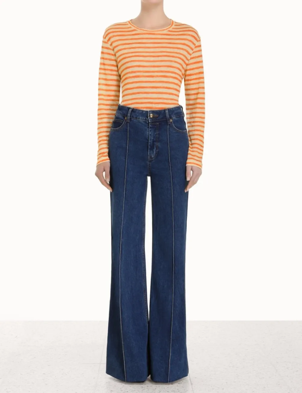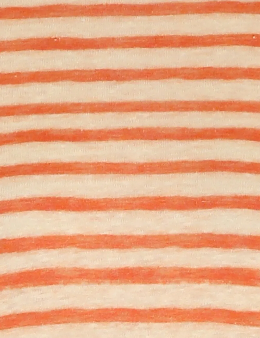 The Luminosity Long Sleeve Tee In Orange Stripefrom Our Fall 2023 Collection, Luminosity. A Linen Tee Featuring A Wide Neckband.