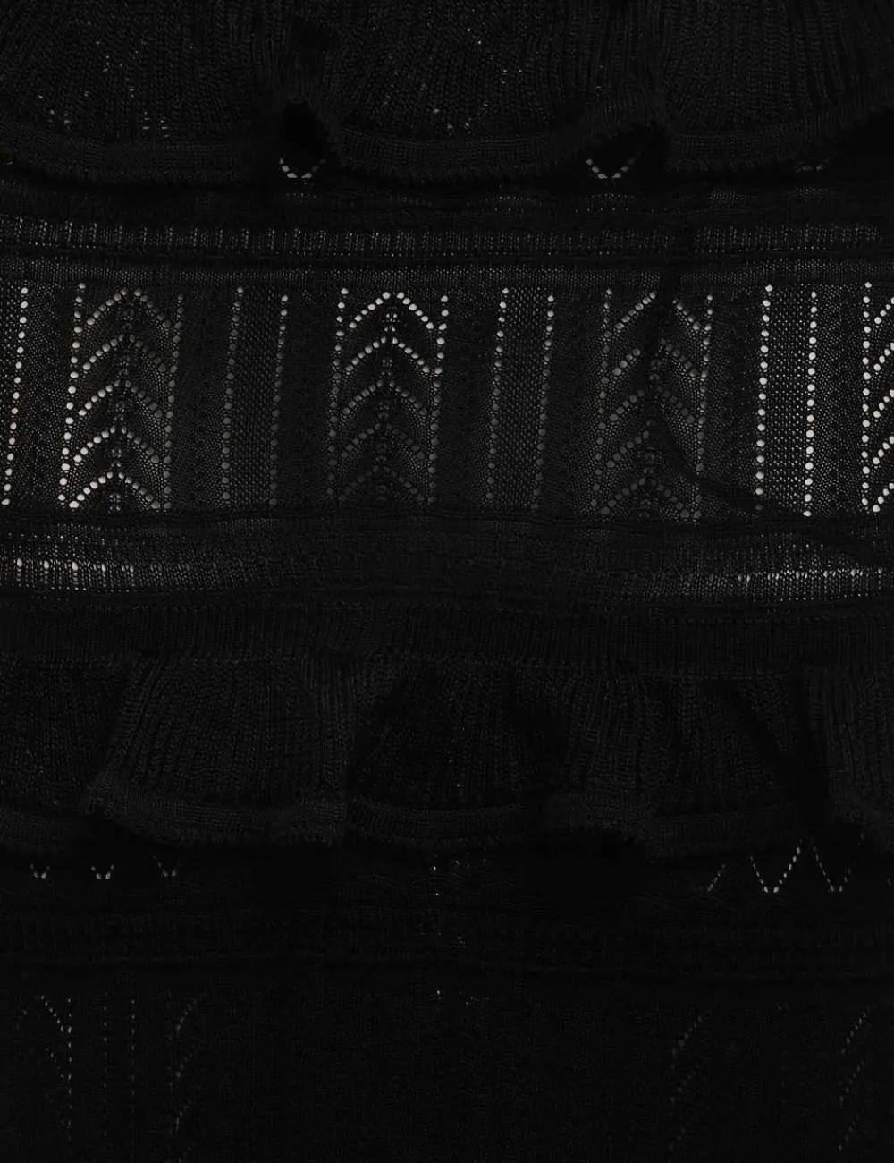 The Luminosity Ruffle Dress In Black From Our Fall 2023 Collection, Luminosity. A Knitted Midi Dress Featuring Ruffled Details Throughout.