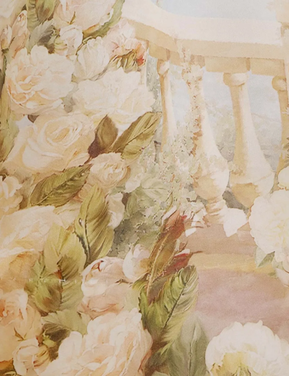 The Lyrical Ruched Midi Dress In Garden Scene From Our Fall 2023 Collection, Luminosity. A Silk Midi Dress Featuring A Statement Brooch And Bias Cut Bodice, Finished With A Full Skirt.
