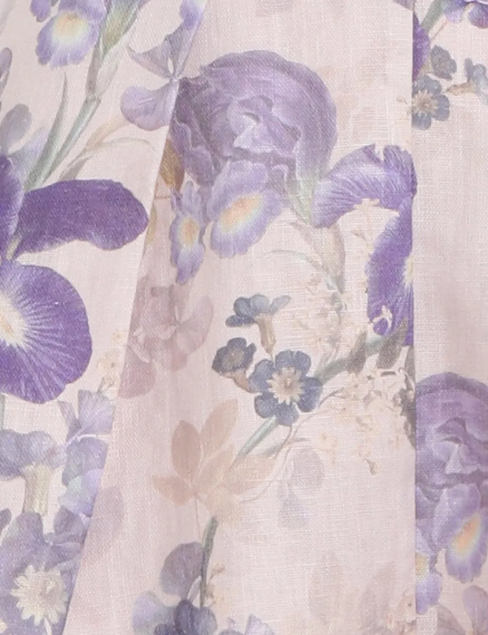 The Lyrical Tuck Shorts In Blue Iris Cream From Our Fall 2023 Collection, Luminosity. A High Waisted Linen Short Featuring Side Seam Pockets And A Self Cover Buckle Belt.