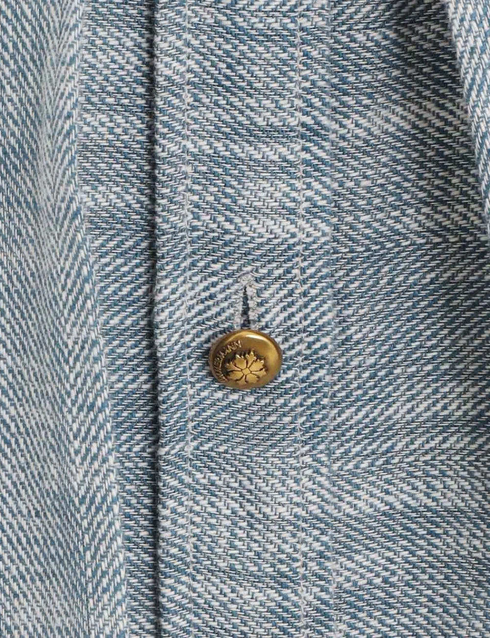 The Lyrical Tunic Blouse In Blue/Cream From Our Fall 2023 Collection, Luminosity. A Linen Blend Blouse Featuring A Self Tie Neck And Custom Branded Buttons Throughout.