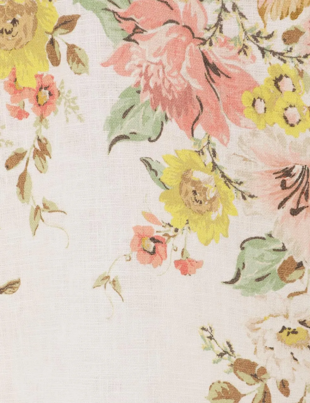 The Matchmaker Buttoned Mini Dress In Ivory/Coral Floral From Our Resort 2024 Collection, Matchmaker. A Linen Mini Dress Featuring A Stand Collar And Exaggerated Sleeves.