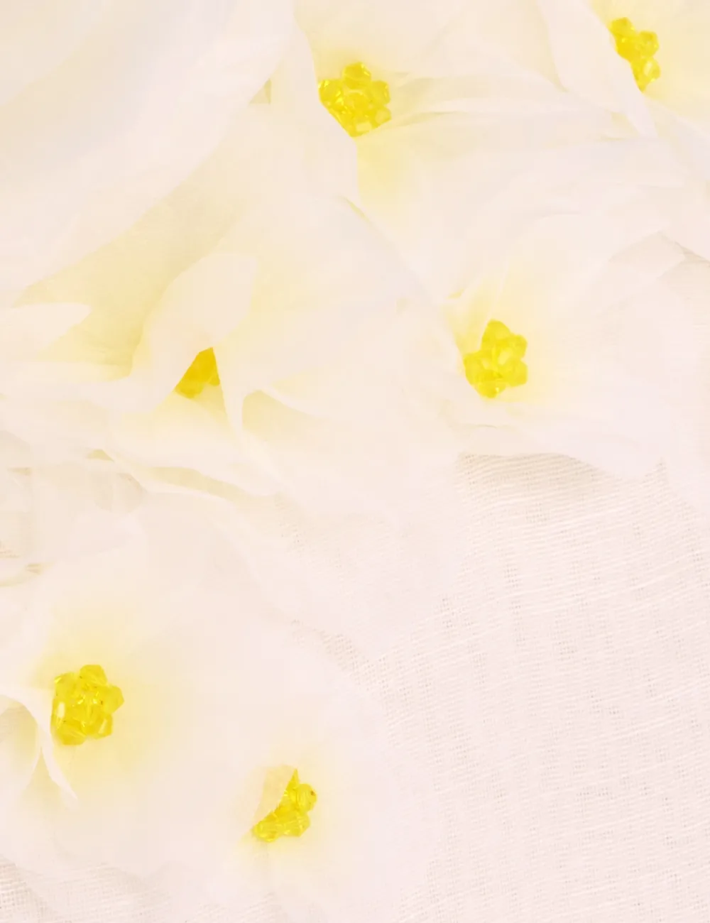 The Matchmaker Daisy Midi Dress In Ivory From Our Resort 2024 Collection, Matchmaker. A Silk Linen Organza Midi Dress Featuring Applique Flowers Throughout.