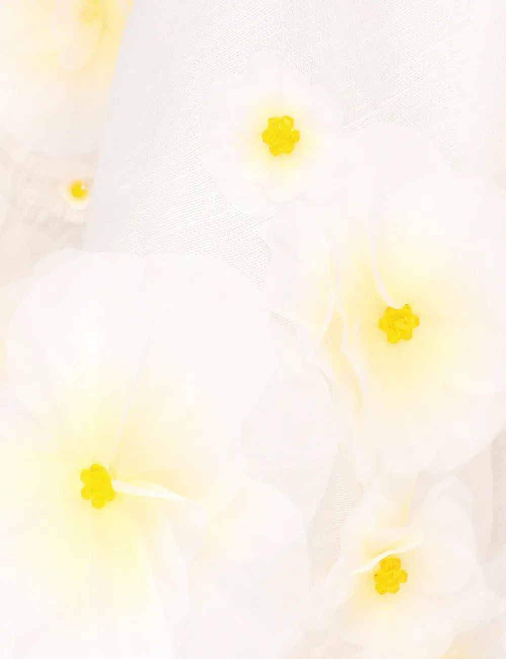 The Matchmaker Daisy Mini Dress In Ivory From Our Resort 2024 Collection, Matchmaker. A Silk Linen Organza Mini Dress Featuring A Plunge Neckline And Applique Flowers Throughout.