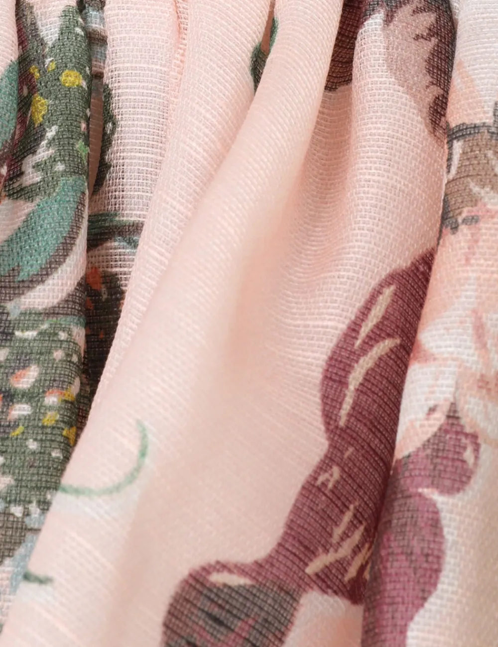 The Matchmaker Drape Mini Dress In Pink Barkcloth Print From Our Resort 2024 Collection, Matchmaker. A Silk Linen Organza Mini Dress Featuring A Bonded Bodice And Draped Details Throughout.