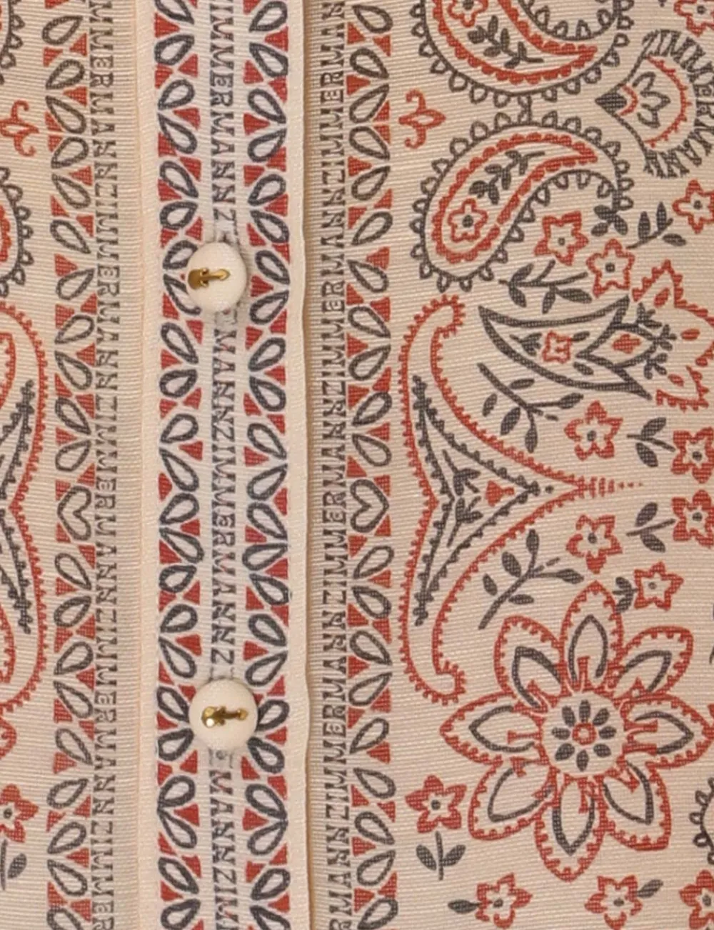 The Matchmaker Tie Neck Blouse In Cream Bandana From Our Resort 2024 Collection, Matchmaker. A Silk Linen Organza Blouse Featuring A Classic Shirt Silhouette And Self Tie Neck.