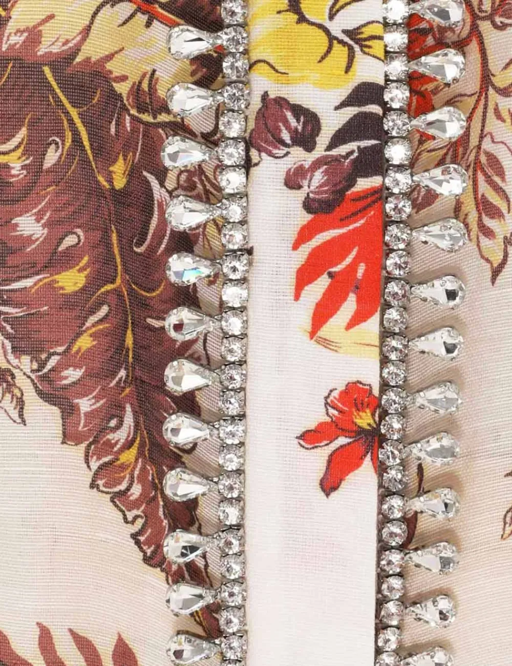 The Matchmaker Tropical Shirt In Ivory Tropical Floral From Our Resort 2024 Collection, Matchmaker. A Silk Linen Shirt Featuring Long Sleeves And Crystal Trims Throughout.