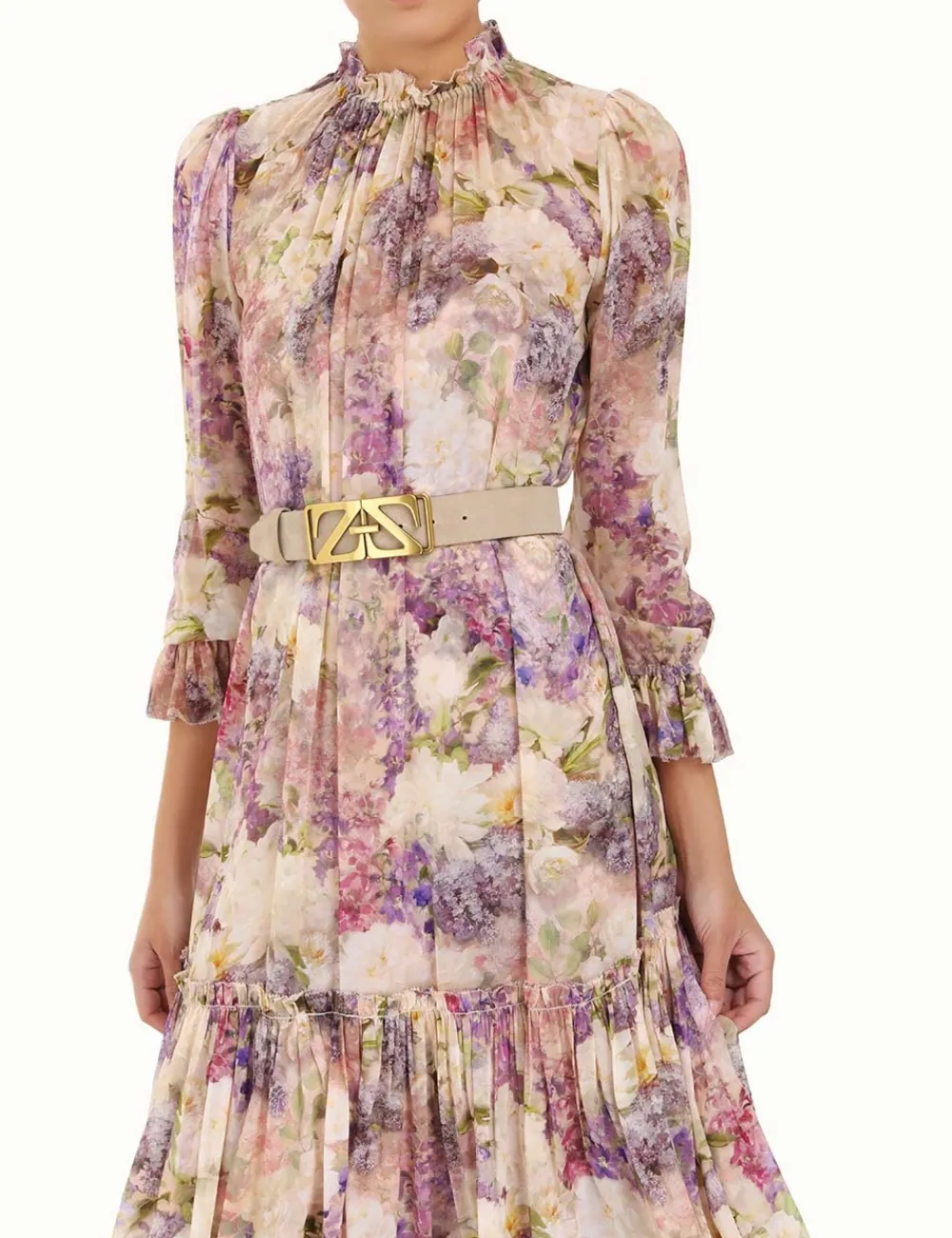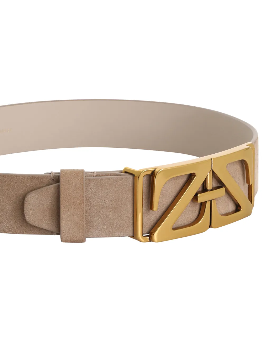 The Monogram Suede Waist Belt In Bone From Our Fall 2023 Collection, Luminosity. A Leather Waist Belt Featuring A Custom Monogram Buckle.