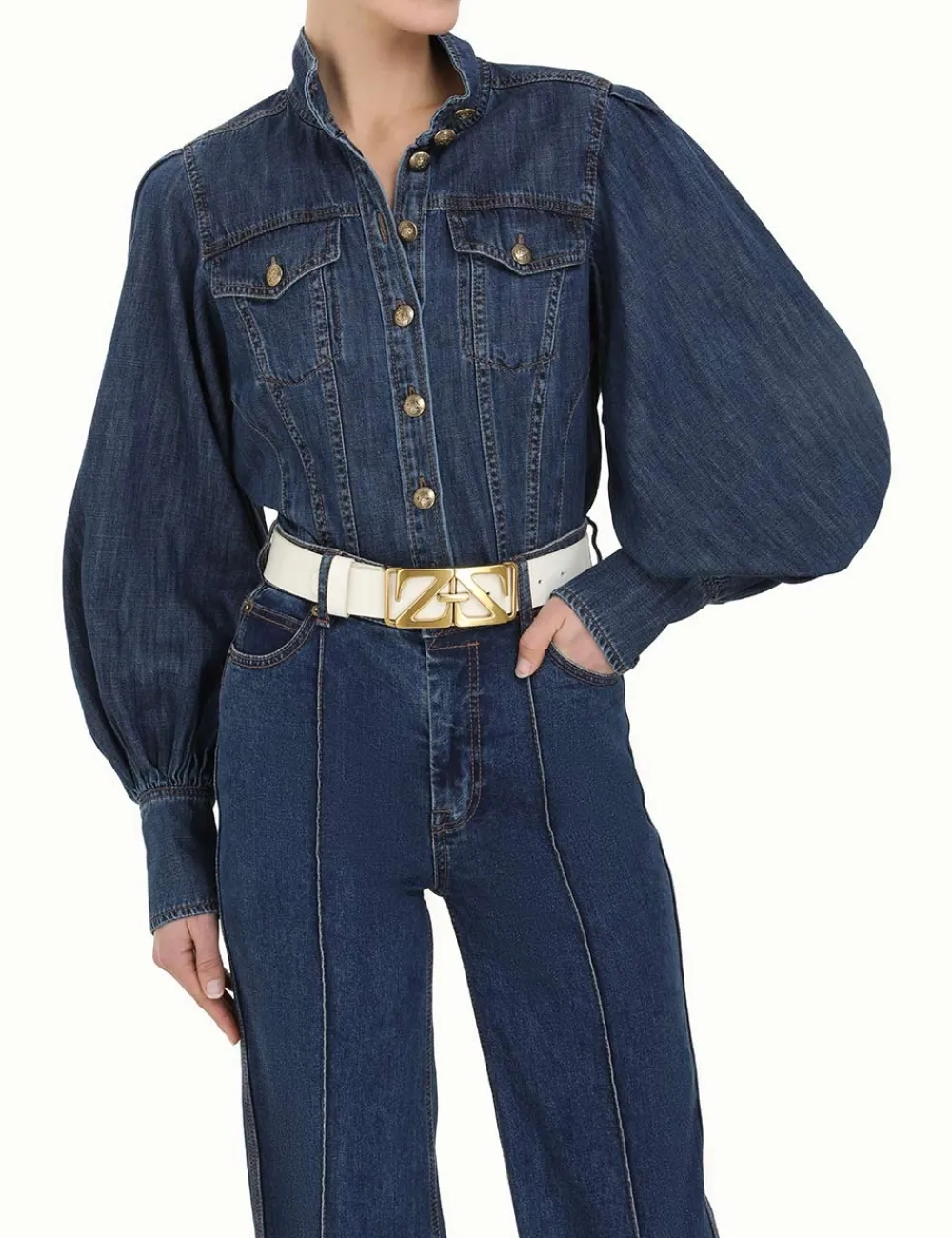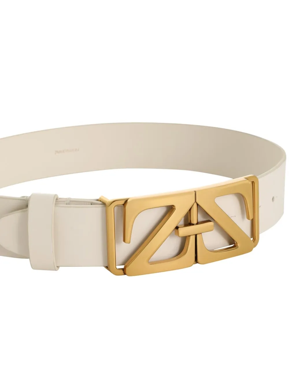 The Monogram Waist Belt In Cream From Our Fall 2023 Collection, Luminosity. A Leather Waist Belt Featuring A Custom Monogram Buckle.
