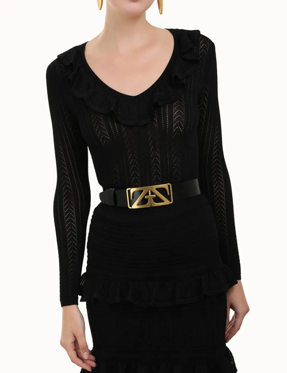The Monogram Waist Belt In Black From Our Fall 2023 Collection, Luminosity. A Leather Waist Belt Featuring A Custom Monogram Buckle.