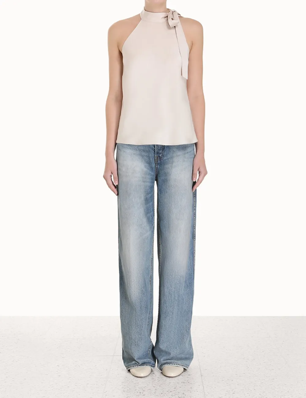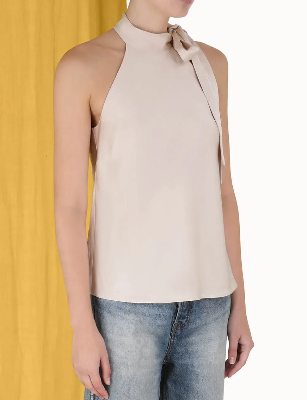 The Neck Tie Tank Top In Champagne From Our Fall 2023 Collection, Luminosity. A Sleeveless Tank Featuring A Self Tie Neck Tie.