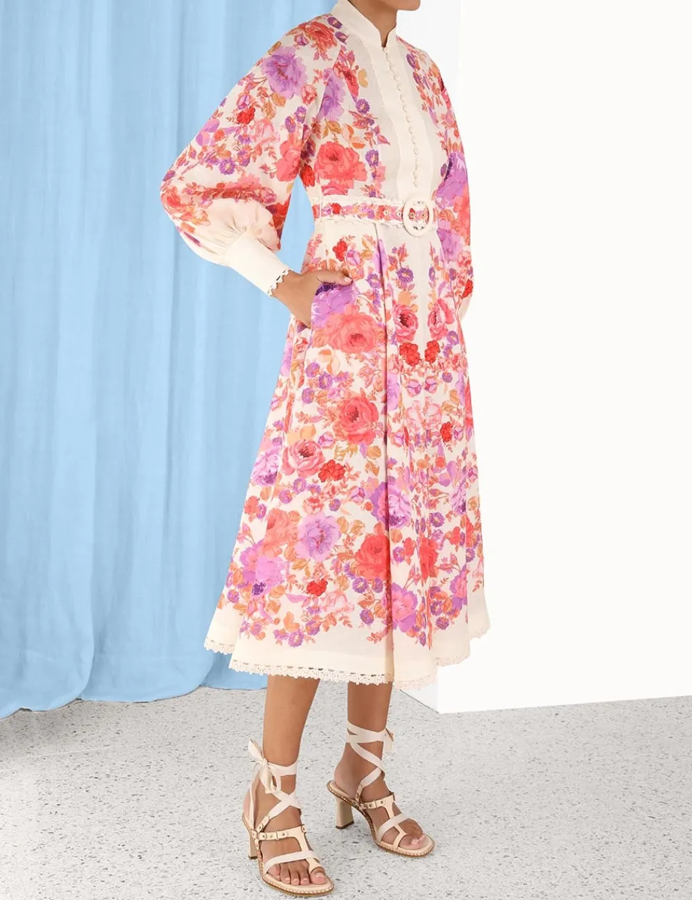 ZIMMERMANN Raie Billow Sleeve Midi Dress-Women Dresses & Coverups