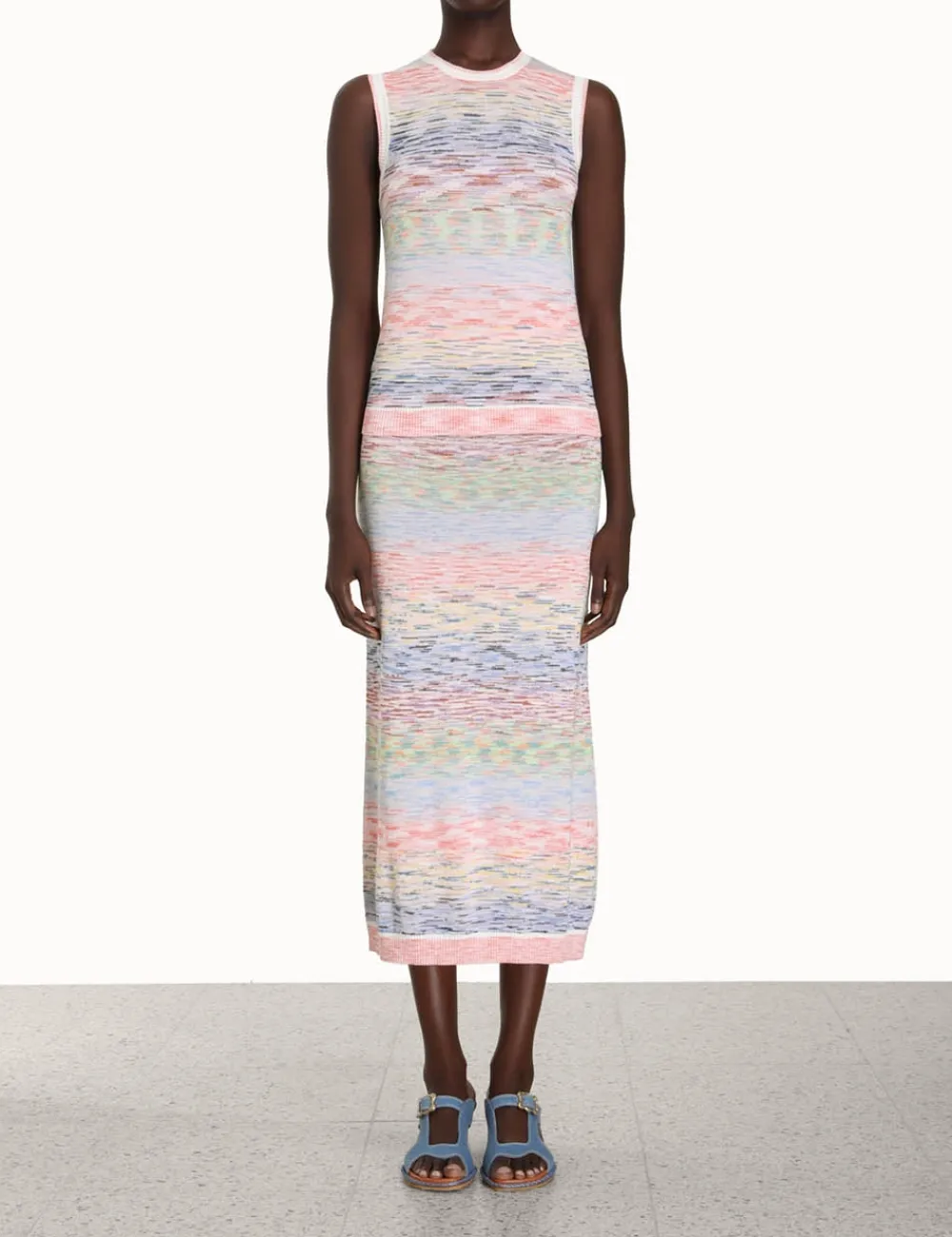 The Raie Marl Midi Skirt In Marle Stripe From Our Summer Swim 2023 Collection. A Knit Midi Skirt With An Elasticated Waistband.