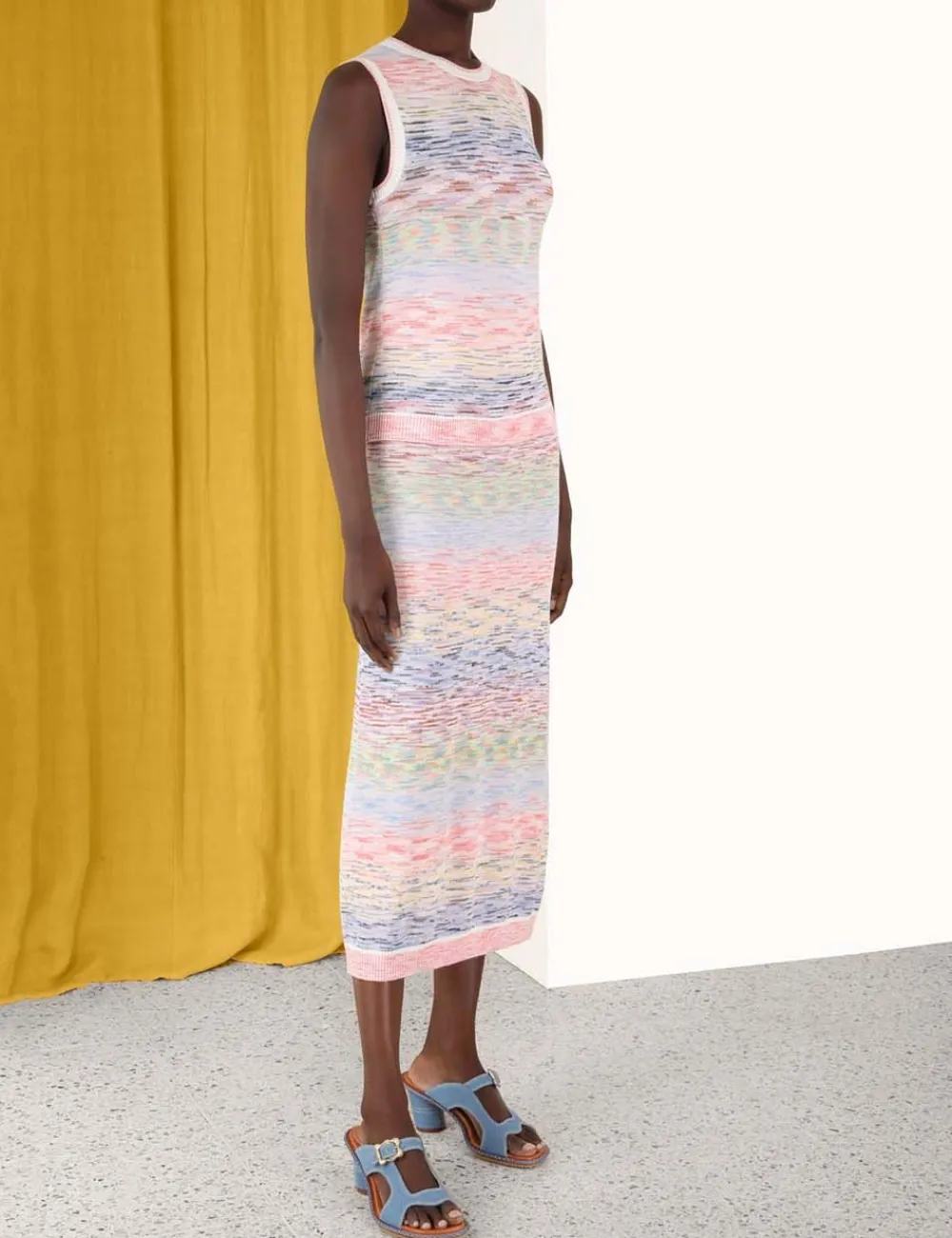 The Raie Marl Midi Skirt In Marle Stripe From Our Summer Swim 2023 Collection. A Knit Midi Skirt With An Elasticated Waistband.