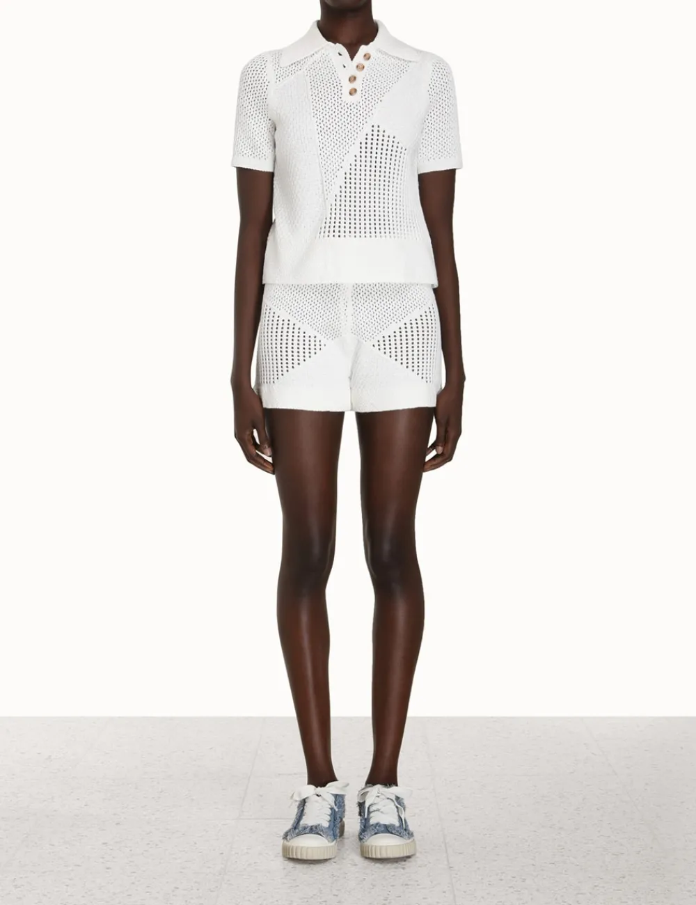 The Raie Mesh Knit Shorts In White From Our Summer Swim 2023 Collection. A Knitted Short Featuring Waist Ties.