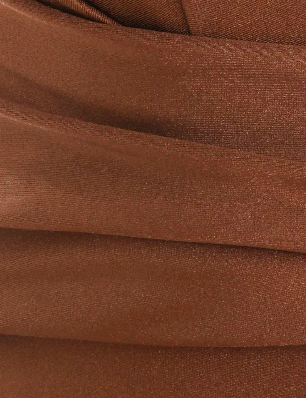The Raie Wrap Plunge 1Pc In Tan From Our Summer Swim 2023 Collection. A Lycra One Piece Featuring A Plunging Neckline And Wrap Look Front.