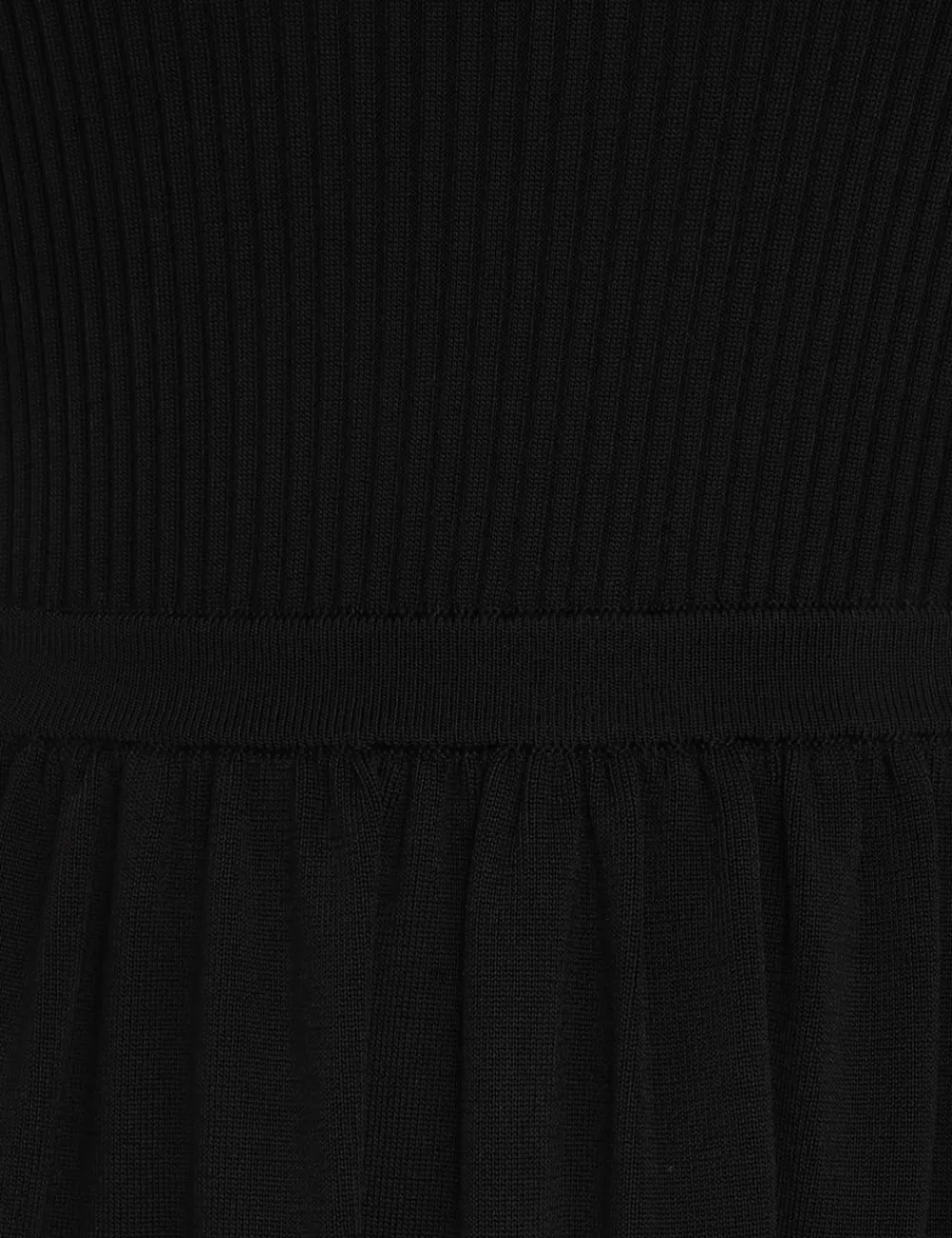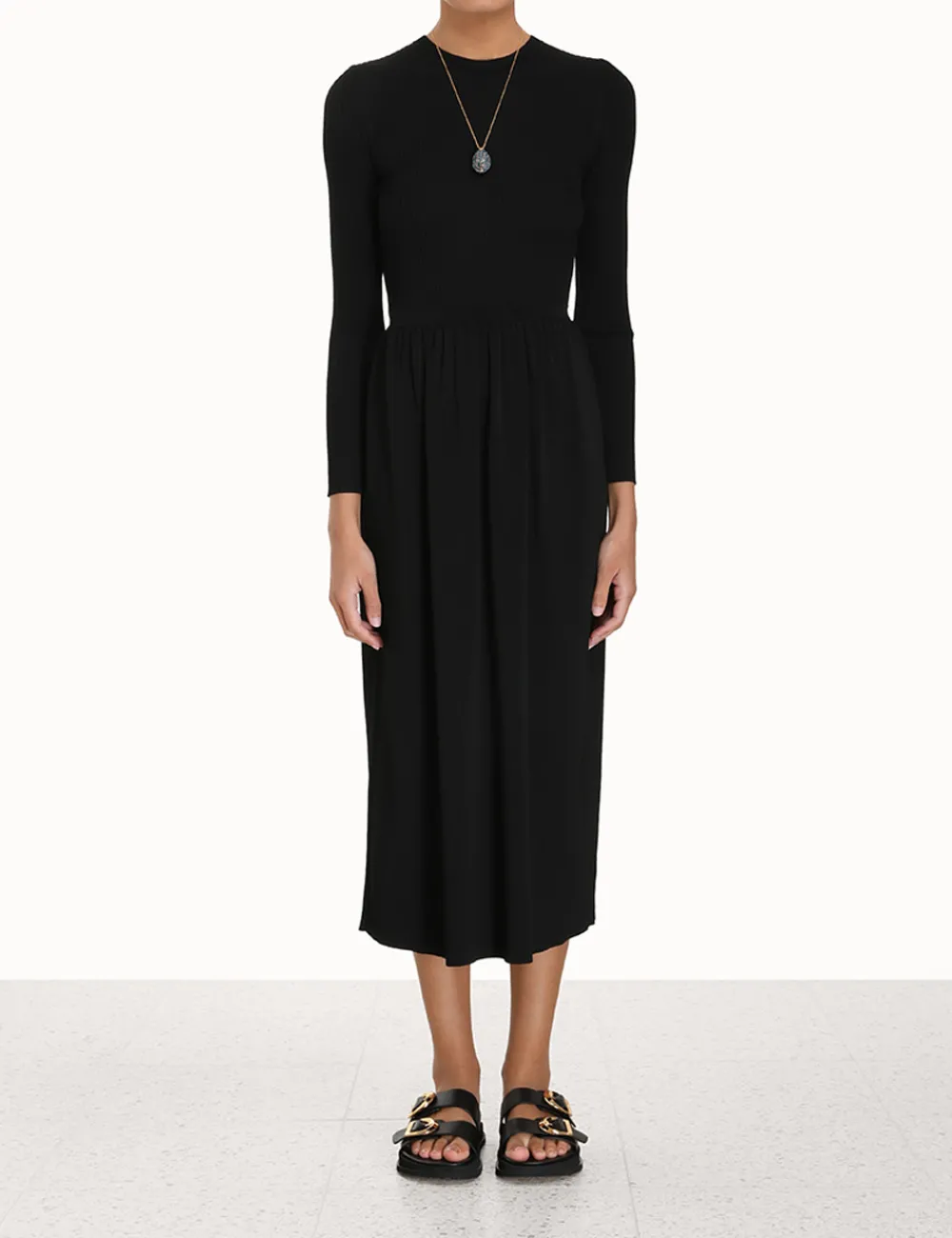The Rib Midi Dress In Black From Our Fall 2023 Collection, Luminosity. A Knitted Midi Dress Featuring A Slightly Gathered Waist.