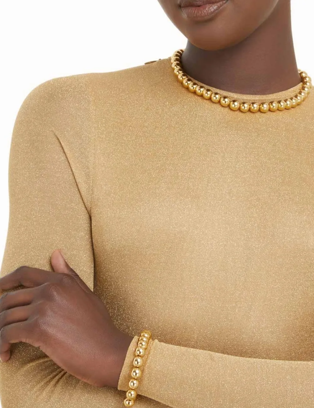 The Sphere Bracelet In Gold From Our Fall 2023 Collection, Luminosity. A Gold Plated Beaded Bracelet Featuring A Contrast Enamel Clasp.